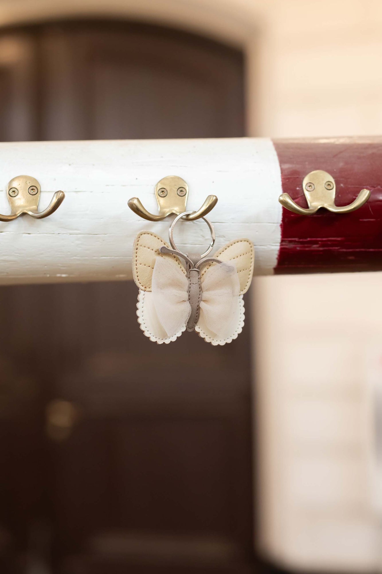 Mit ihrem wunderschönen Schmetterlingsdesign ist der Alja Vlinder Anhänger das perfekte Geschenk für jeden Anlass. Sorgfältig aus metallischem Nubukleder gefertigt und mit zarten Tüll-Details versehen, verleiht dieser Schlüsselanhänger Taschen, Rucksäcken und mehr einen stilvollen letzten Schliff.