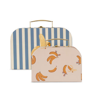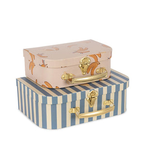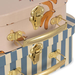 Niedliches Koffer-Set "Magia Blue" von Konges Sløjd aus zwei Spielkoffern aus Pappe mit Metallgriff.