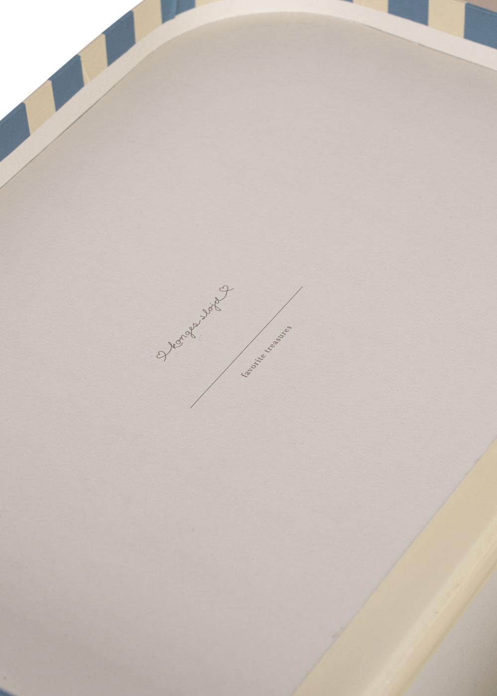 Niedliches Koffer-Set "Magia Blue" von Konges Sløjd aus zwei Spielkoffern aus Pappe mit einem Metallgriff. Der kleinere Koffer passt in den grösseren und macht mit den verspielten Mustern besonders viel Spass.