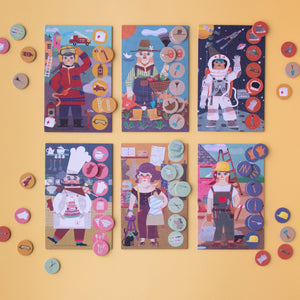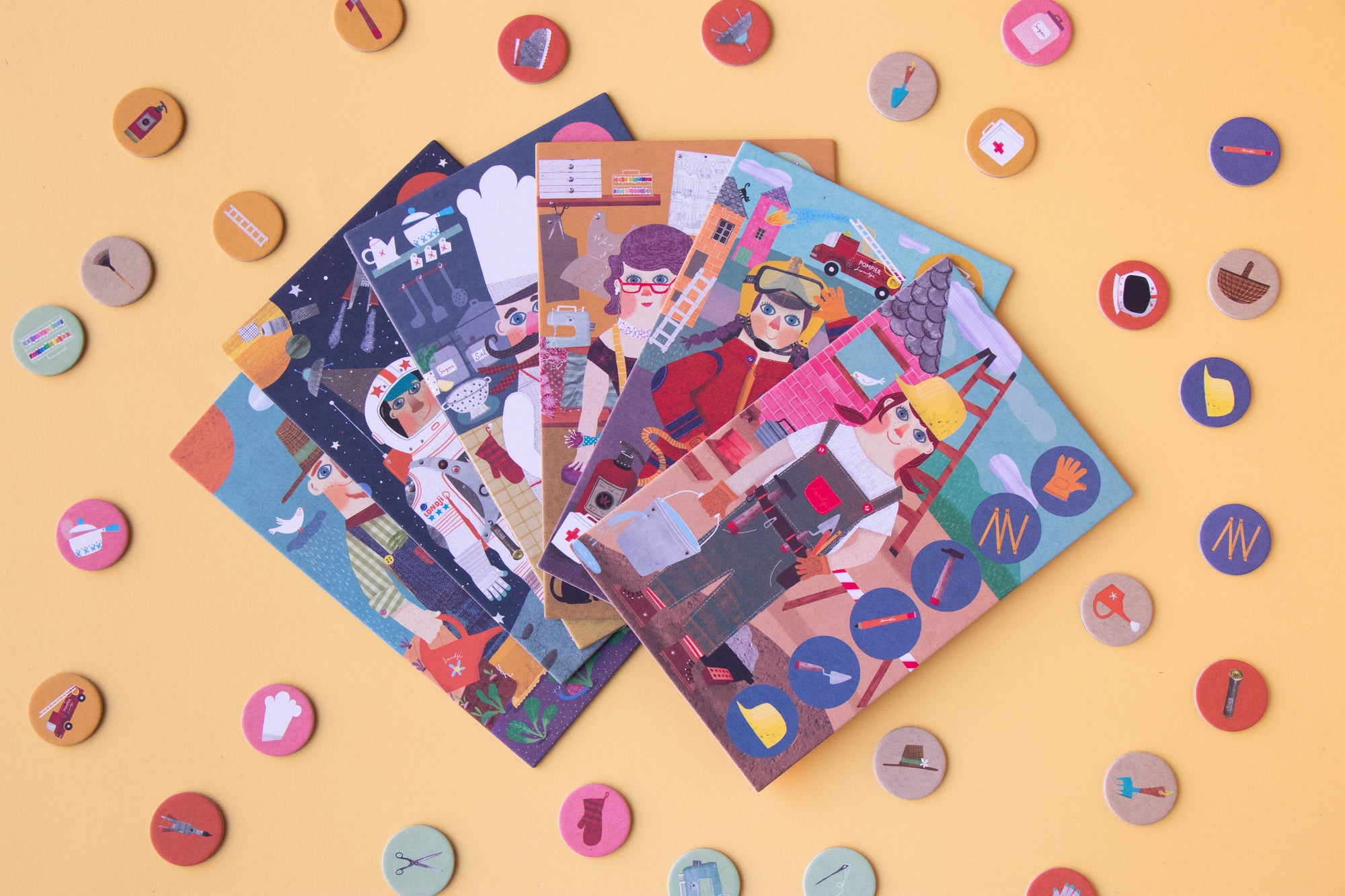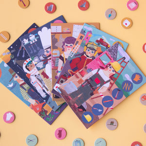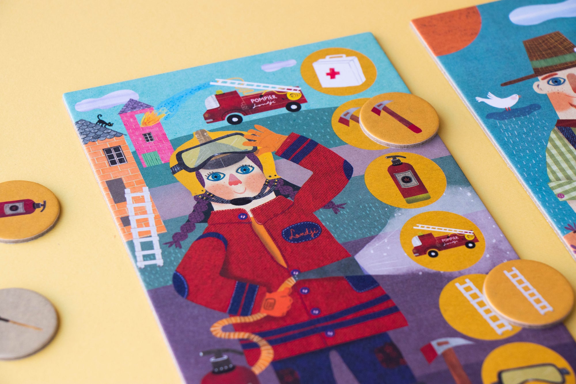 Dieses wunderschön illustrierte Lotto-Spiel lädt kleine Träumer dazu ein, verschiedene Berufsbilder zu erkennen und zuzuordnen – vom Feuerwehrmann über die Ärztin bis zur Künstlerin.
