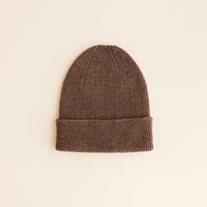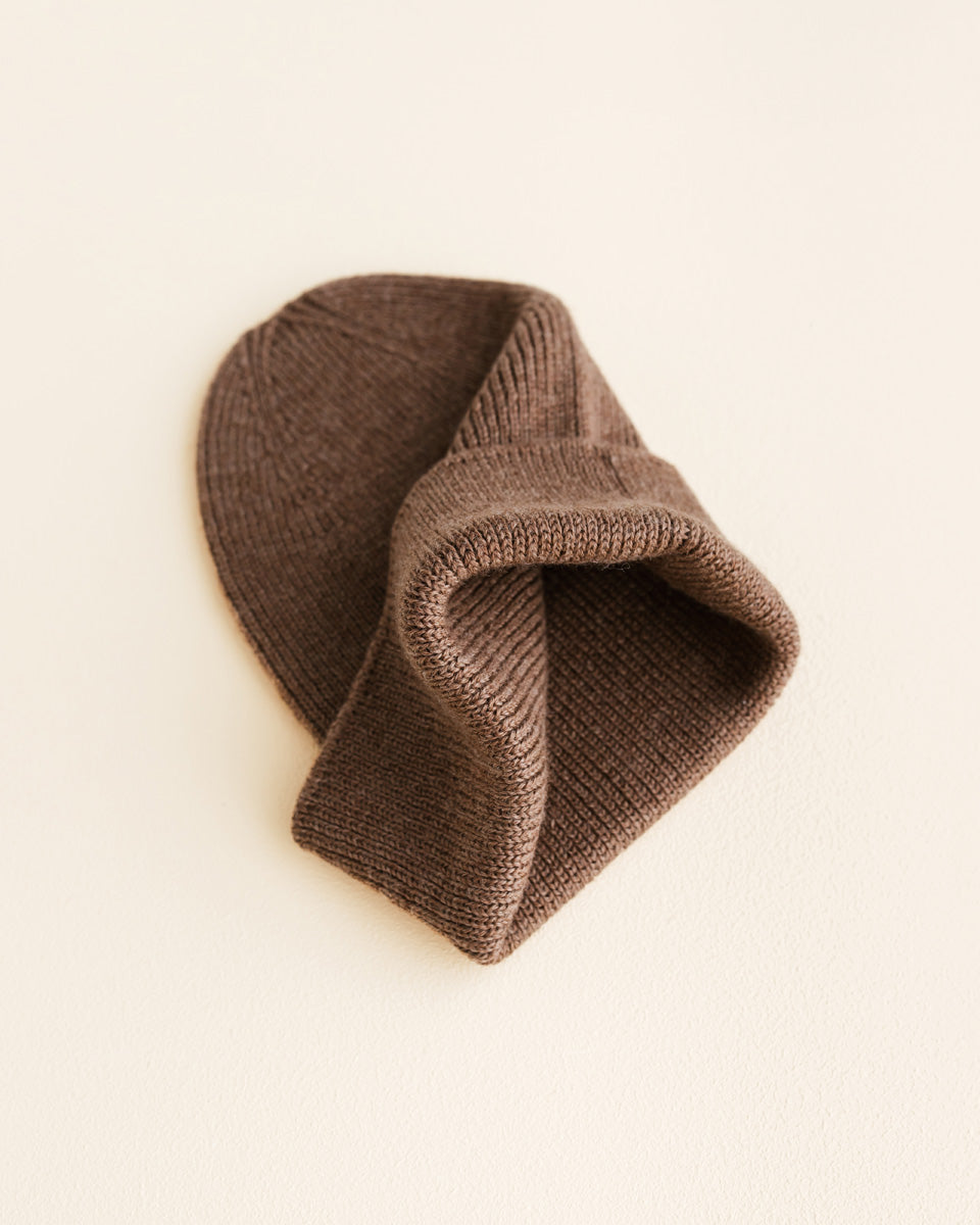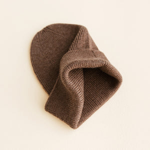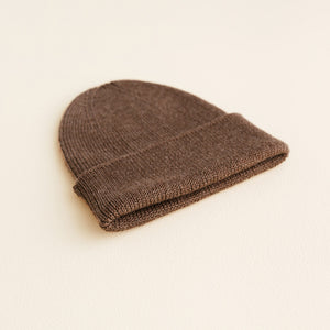 Wunderschöne handgestrickte und sehr weiche Strickmütze "Fonzie" von Hvid. Hergestellt aus feinster Merinowolle. Im Rippstrick gefertigt hat sie die perfekte Passform für das Neugeborene.