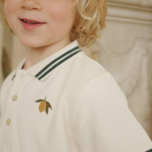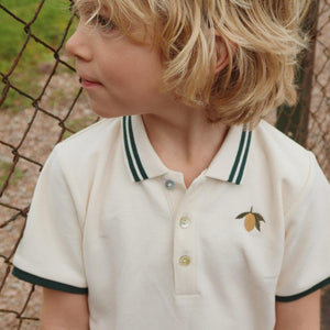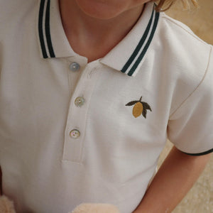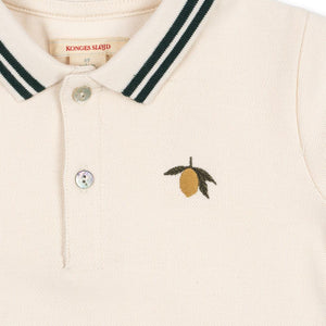 Das coole Polo Shirt von Konges Sløjd mit einem verspielten Zitronenprint auf der Brust, perfekt für die Sommergarderobe. Das Polo Shirt ist aus weicher Bio-Baumwolle gefertigt und bietet beim Spielen, Toben und Faulenzen einen hohen Tragekomfort.