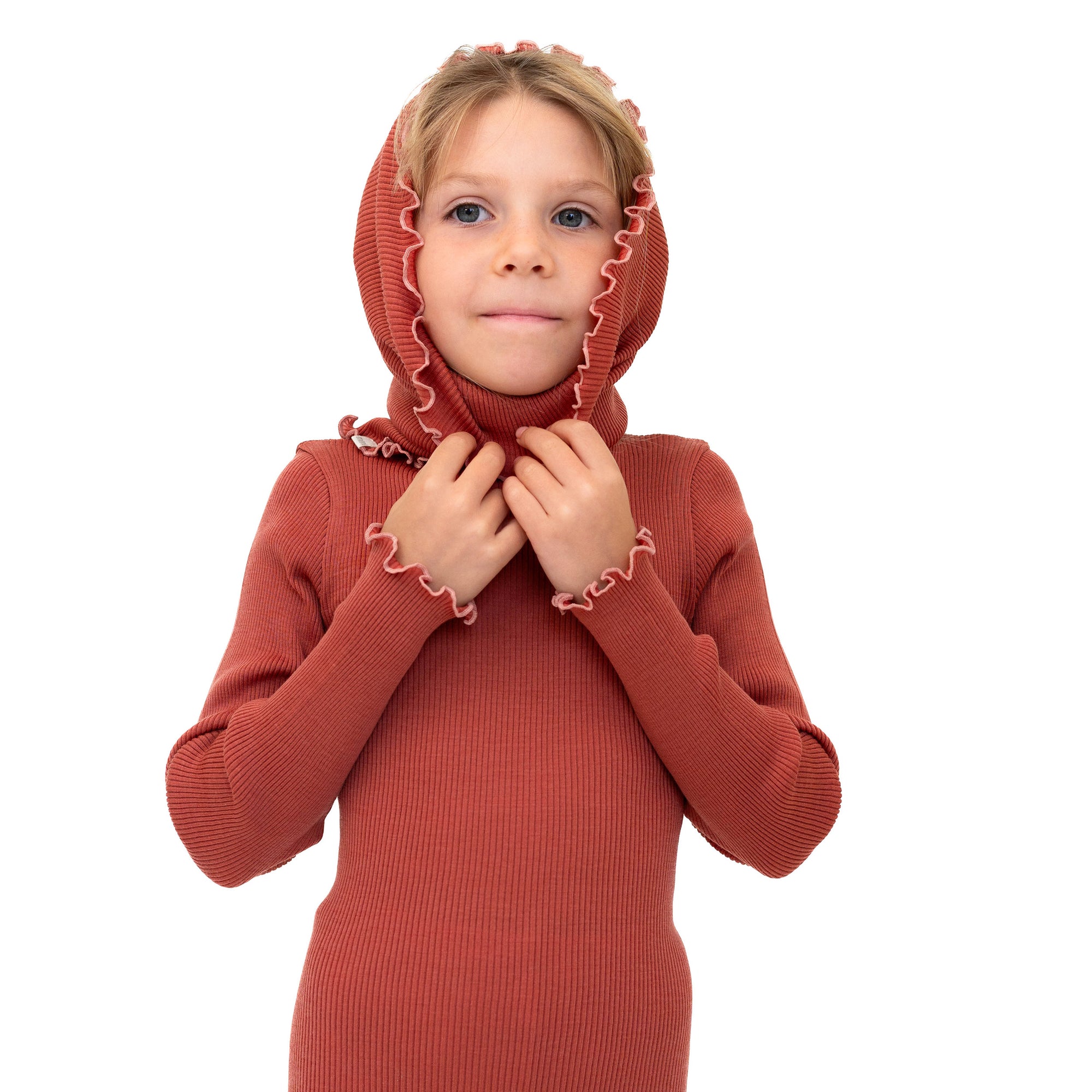 Weicher Loop-Schal "Aha" von minimalisma mit Rüschen ist aus 100% Merinowolle mit kontrastierenden Nähten an den Rüschen gefertigt, die für einen modischen und dennoch super bequemen Look sorgen.