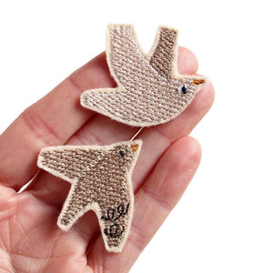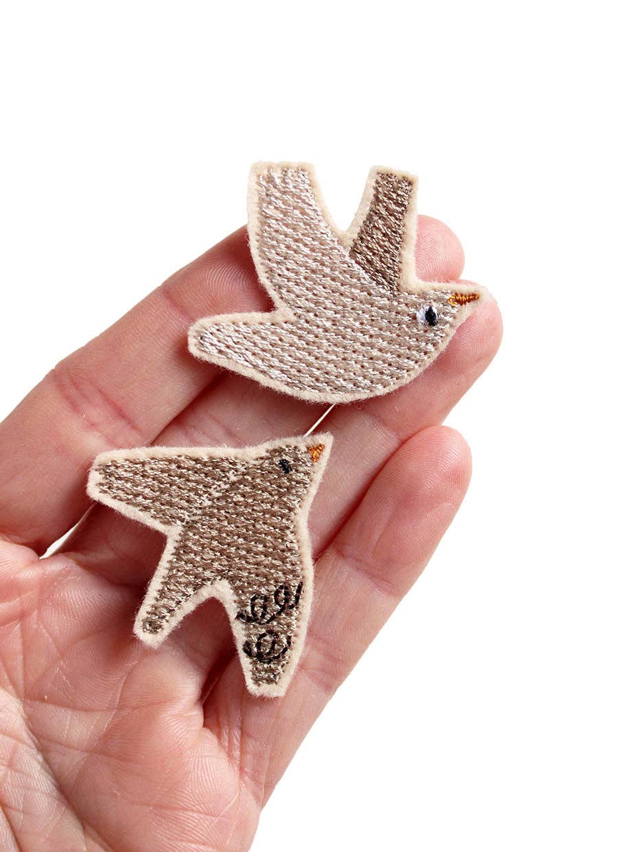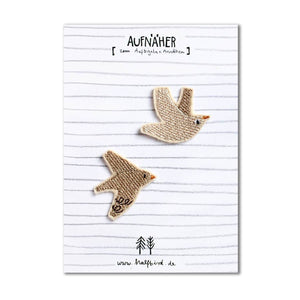Zwei schöne Vogel Aufnäher in warmen Beige Tönen. Der Bügelflicken ist schön weich und flexibel. Du kannst sie auf fast allen Stoffen aufbügeln.