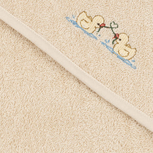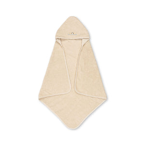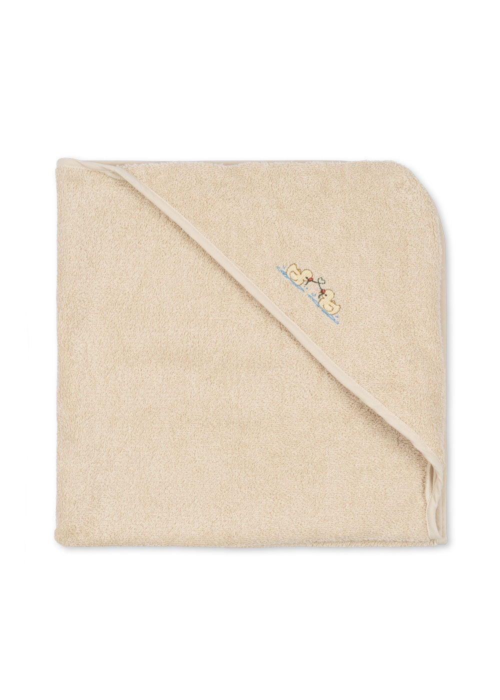 Das Konges Sløjd Figo Baby Towel – Antique White ist ein kuschelig weiches Kapuzenhandtuch für Babys, gewebt aus schwerem, saugfähigem Bio-Frottee.