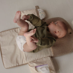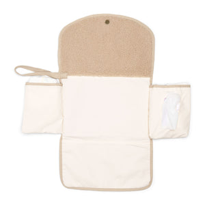 Die Wickelunterlage aus Teddy-Stoff in Eccru von Studio Noos ist der perfekte Begleiter für alle Eltern, die auch unterwegs nicht auf Komfort und Stil verzichten möchten.