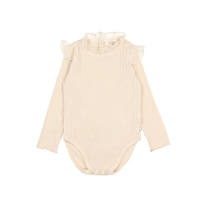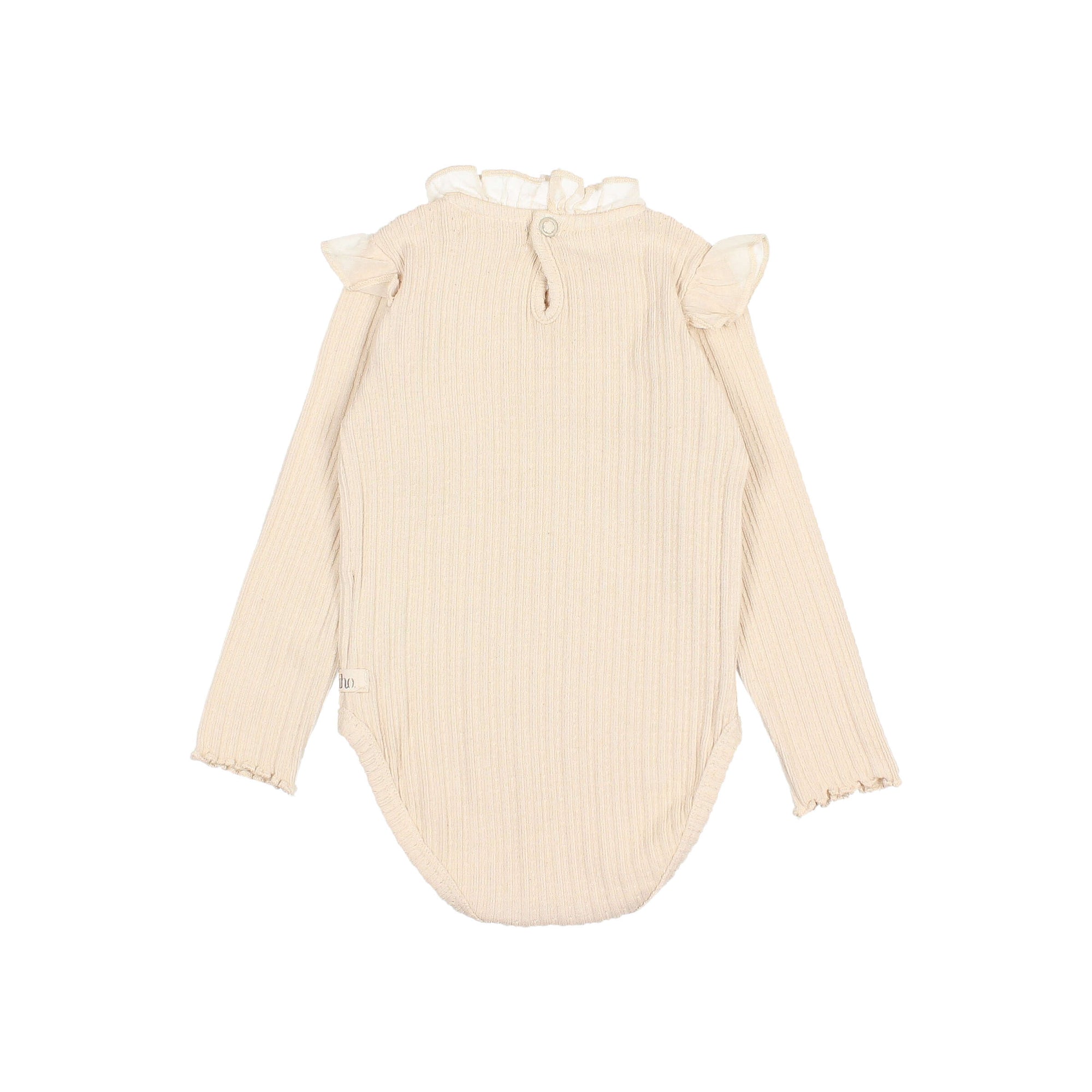 Der Búho Body Rib in Ivory ist ein stilvoller und gleichzeitig bequemer Body aus weicher, gerippter Bio-Baumwolle. Zarte Baumwoll-Voile-Rüschen an den Schultern und am Halsausschnitt verleihen ihm eine verspielte, feminine Note. Der runde Halsausschnitt mit Tropfenverschluss hinten sorgt für ein einfaches An- und Ausziehen, während praktische Druckknöpfe im Schritt das Wickeln erleichtern. Ein liebevoll gestaltetes Basic, das Komfort mit feinen Details verbindet – ideal für Alltag und besondere Momente.