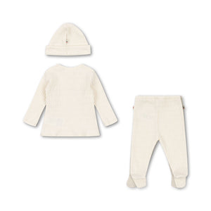 - Bestehend aus Oberteil, Leggings mit Füsschen und Mütze