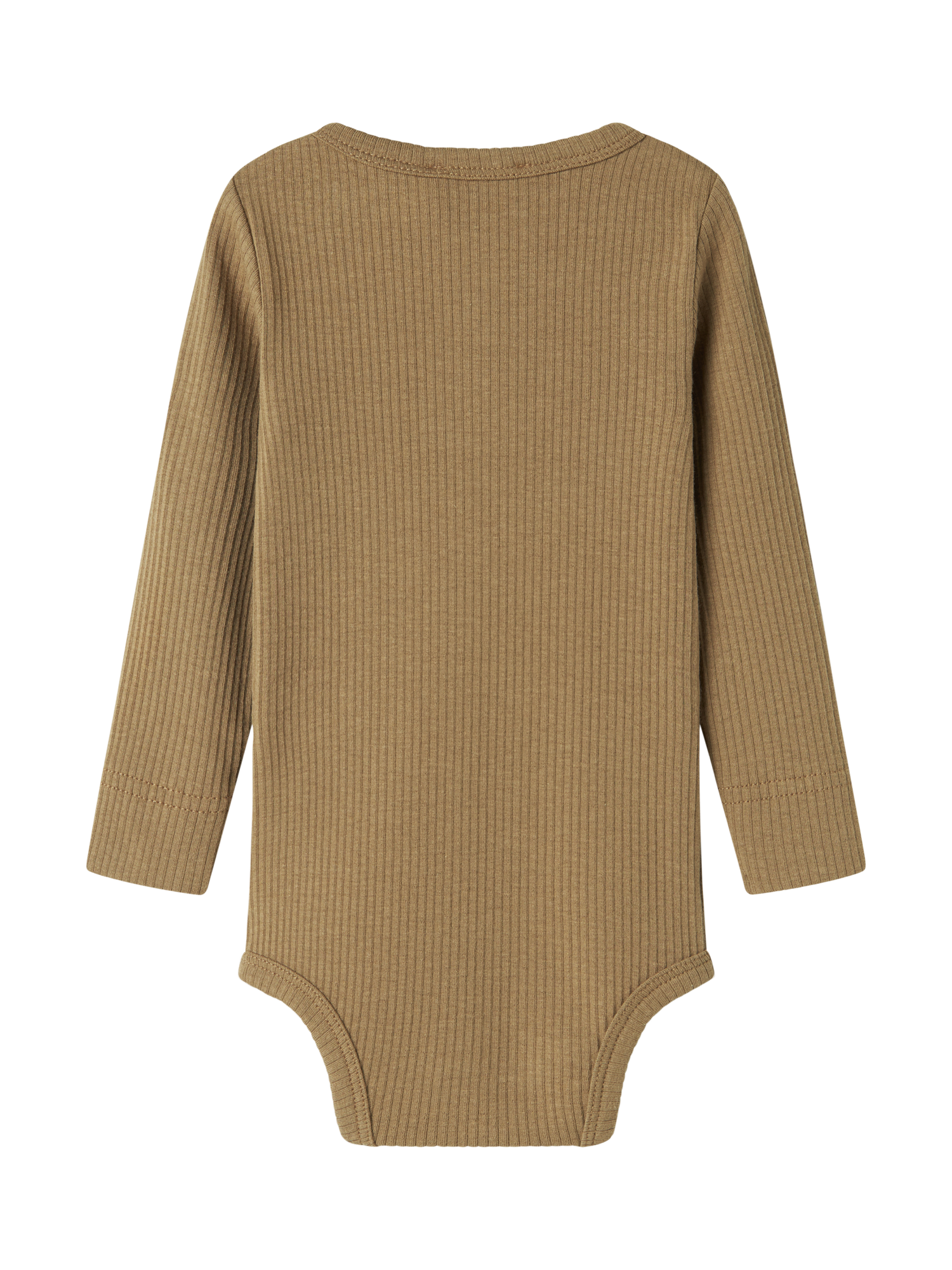Der Body ist gerippt, form- und farbbeständig und enthält Elastan, wodurch er dehnbar und so angenehm zu tragen ist.