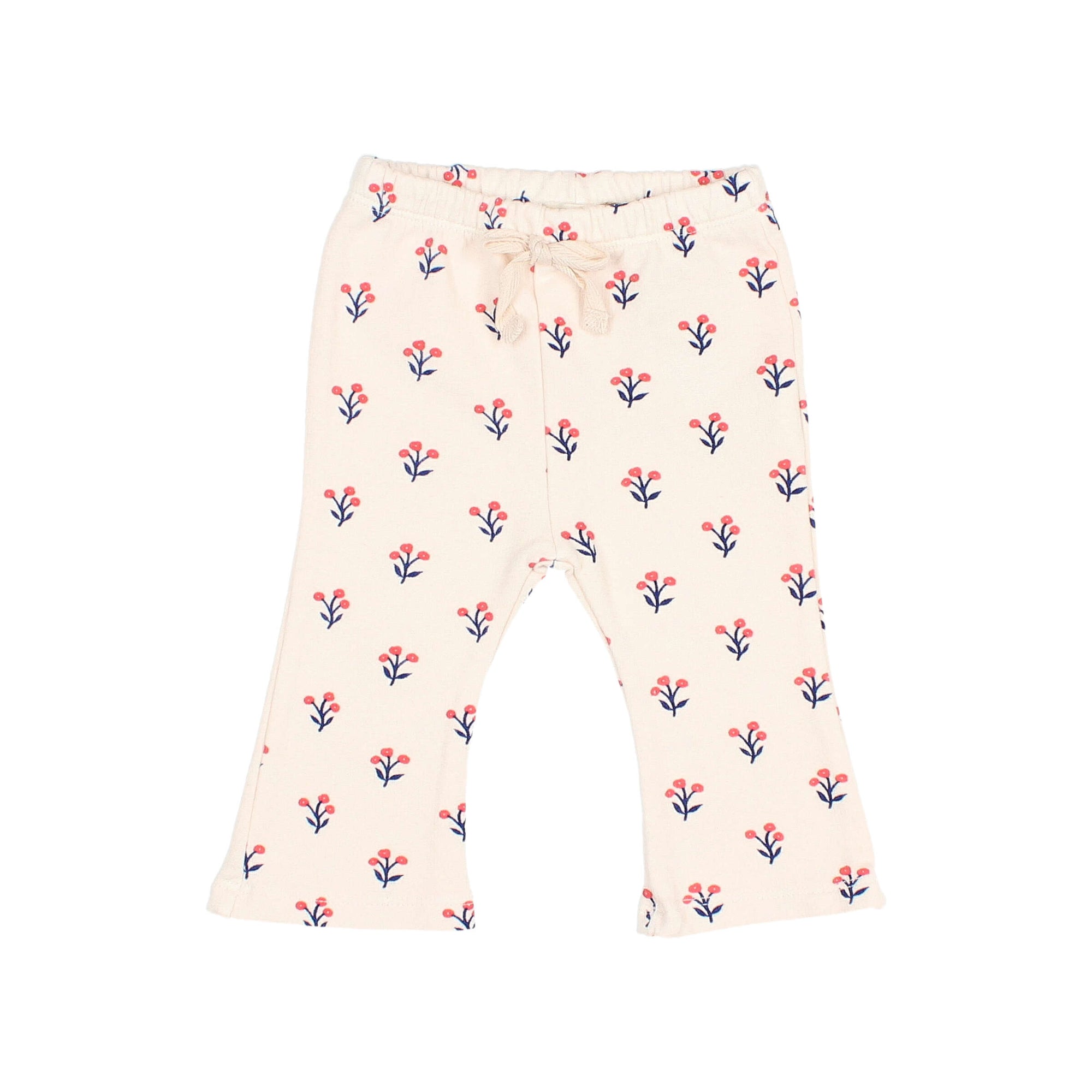 Die Hose hat einen elastischen Bund mit dekorativer Schleife. und ein leicht ausgestellter Saum am Hosenbein.