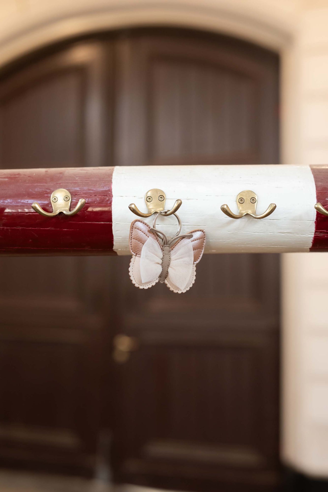 Mit ihrem wunderschönen Schmetterlingsdesign von Donsje ist der Alja Vlinder Anhänger das perfekte Geschenk für jeden Anlass. Sorgfältig aus metallischem Nubukleder gefertigt und mit zarten Tüll-Details versehen, verleiht dieser Schlüsselanhänger Taschen, Rucksäcken und mehr einen stilvollen letzten Schliff.