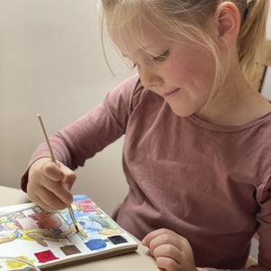• Pinsel und Wasserfarben sind bereits im Block integriert.