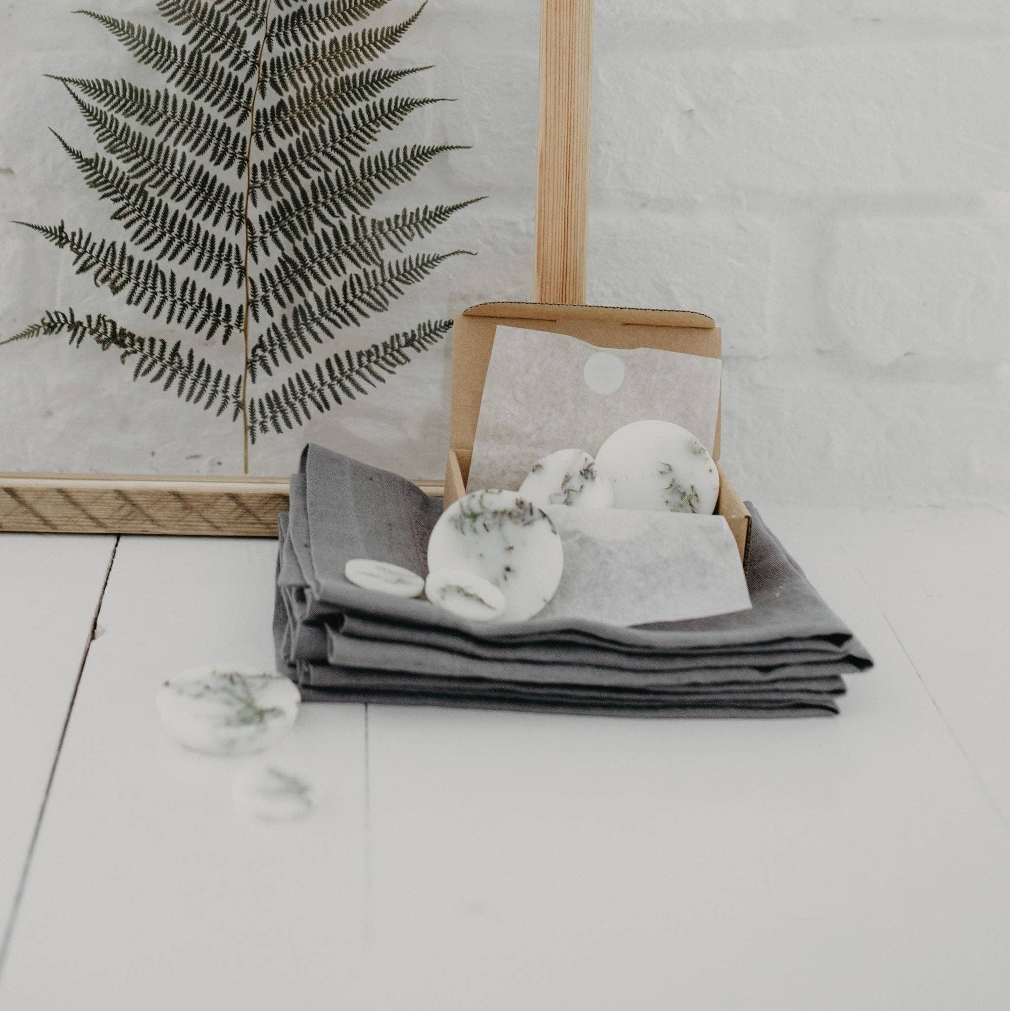 The Munio Handgemachte Duftwachs-Scheiben „Moos“ aus nachhaltigem Soja- und Rapswachs. Natürlicher Waldduft, dekoriert mit Moos. Perfekt für kleine Räume, Schubladen oder Wachswärmer.