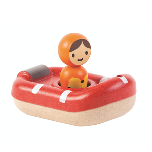 Mit dem roten Rettungsboot hilfst du allen in Seenot. Lass deiner Fantasie freien Lauf. Figur herausnehmbar. Geeignet für die Wanne, das Kinderplanschbecken oder einen Brunnen. PlanToys fabriziert nachhaltige und natürliche Holzprodukte aus rezyklierten Kautschuk-Bäumen.
