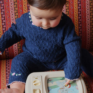 Das My Melody TV von Konges Sløjd in der Farbe Lemon ist ein zauberhaftes Musikspielzeug-Spielgerät für die Kleinsten. Mit sanften Melodien, beweglichem Bildschirm und liebevollem Design bietet es Unterhaltung und Beruhigung – ideal für Spielzeit, Einschlafrituale oder einfach zum Entdecken.
