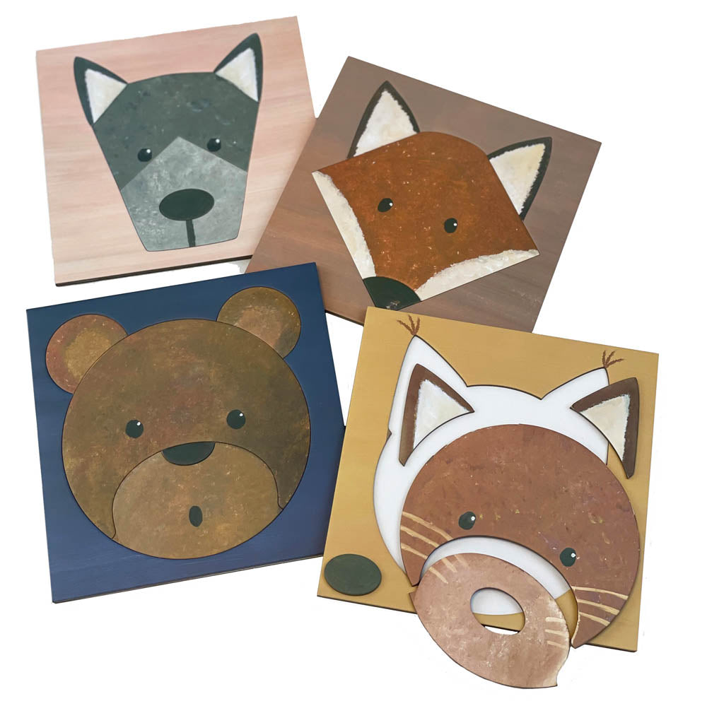 - 4 kindgerechte Puzzles mit aufsteigendem Schwierigkeitsgrad