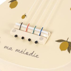 Mit der Ukulele im Glossy Lemon Design von Konges Sløjd entdecken kleine Musiker*innen spielerisch die Welt der Töne.