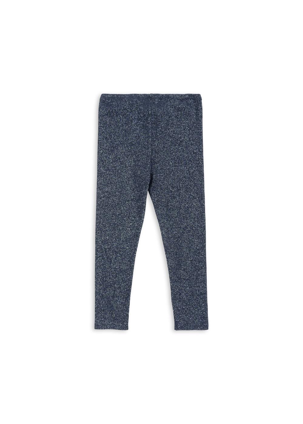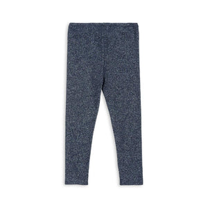 Funkelnder Komfort für kleine Abenteurerinnen: Die Roli Leggings von Konges Sløjd in Mood Indigo vereinen weichen Rippstoff mit einem dezenten Lurex-Schimmer. Perfekt für Alltag, Kita oder festliche Anlässe – mit stylischem Glitzereffekt und bequemer Passform.