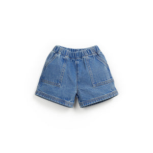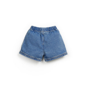 Diese lässige kurze Jeanshose von Play Up besteht zu 100% aus Bio-Baumwolle. Die robuste Babyshorts hat einen elastischen Bund und zwei Seitentaschen.