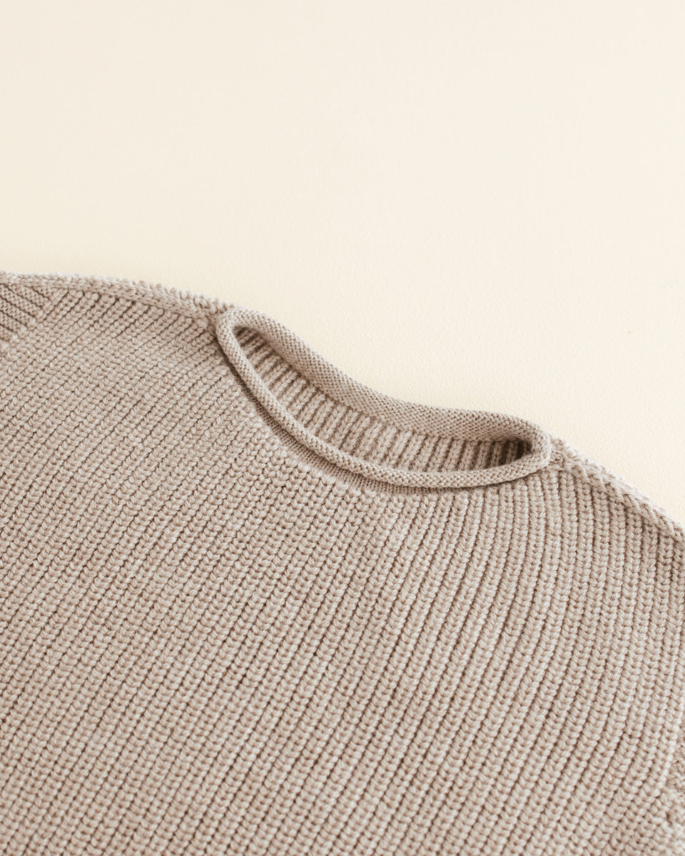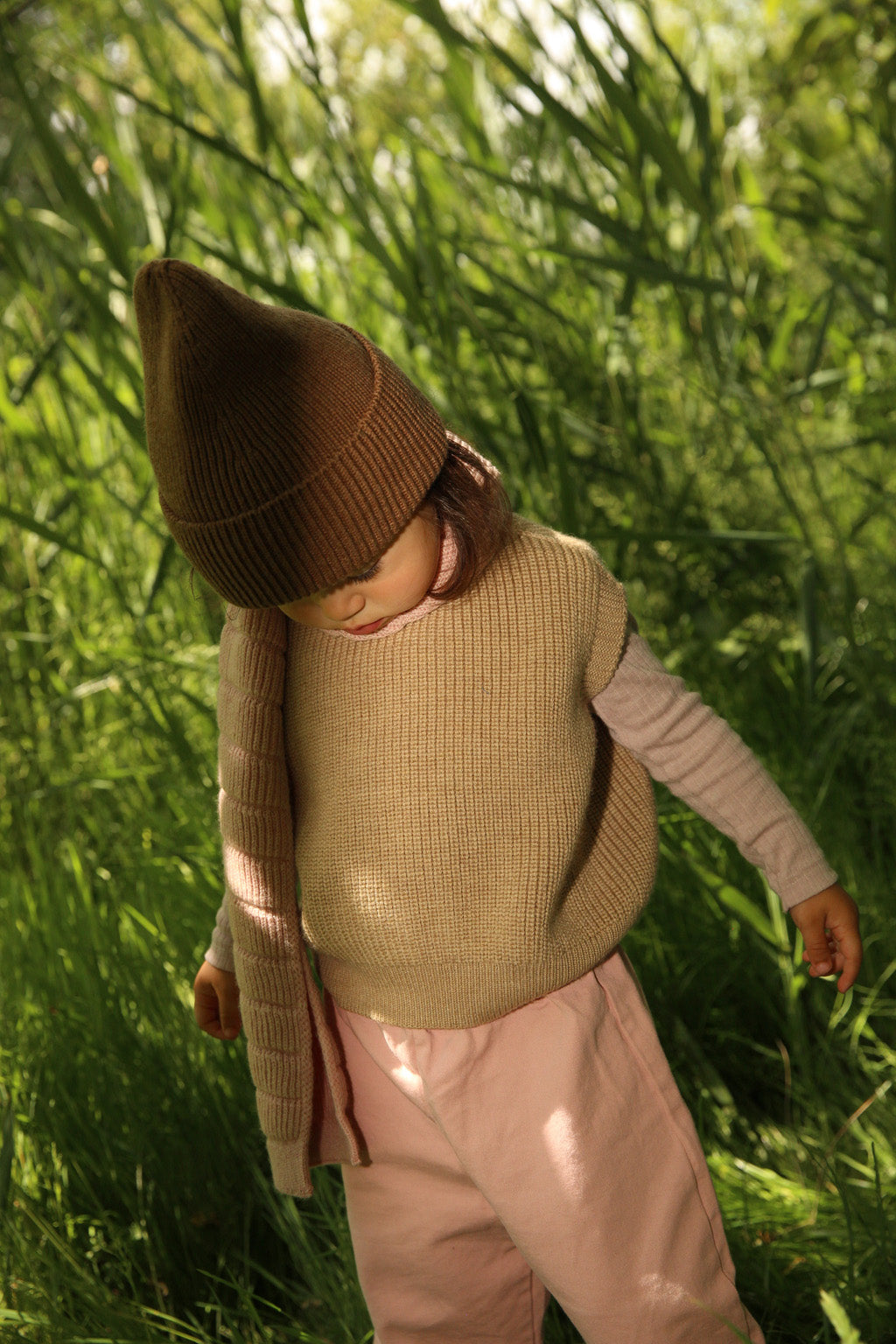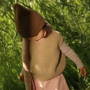 Die Hvid Kinder Strick-Weste „Harvey“ – Sand ist ein wunderschön schlichtes, hochwertiges Kleidungsstück für die Kleinen.