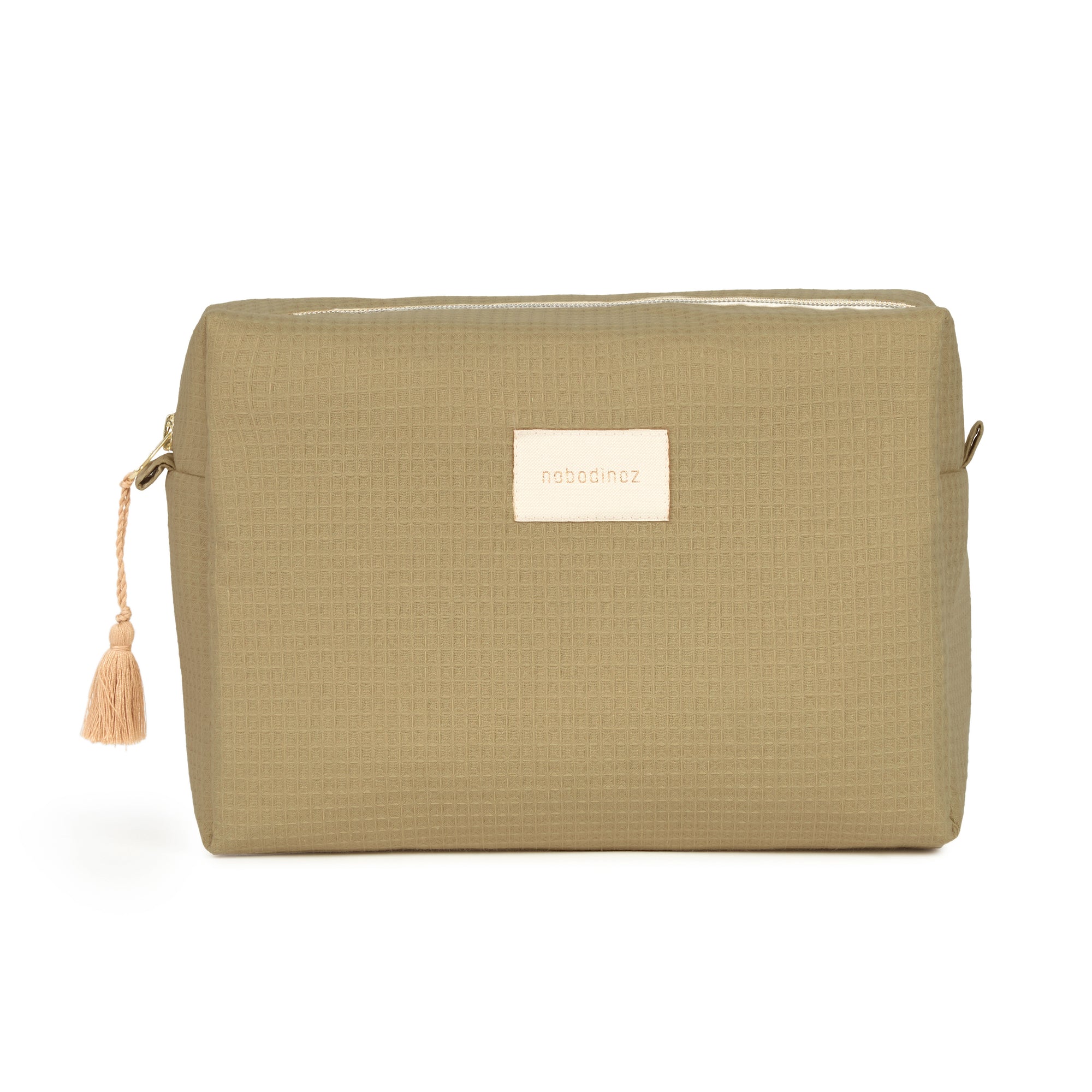 Wunderschöne Kosmetiktasche 'Diva' aus Bio-Baumwolle in Olive Green von Nobodinoz.