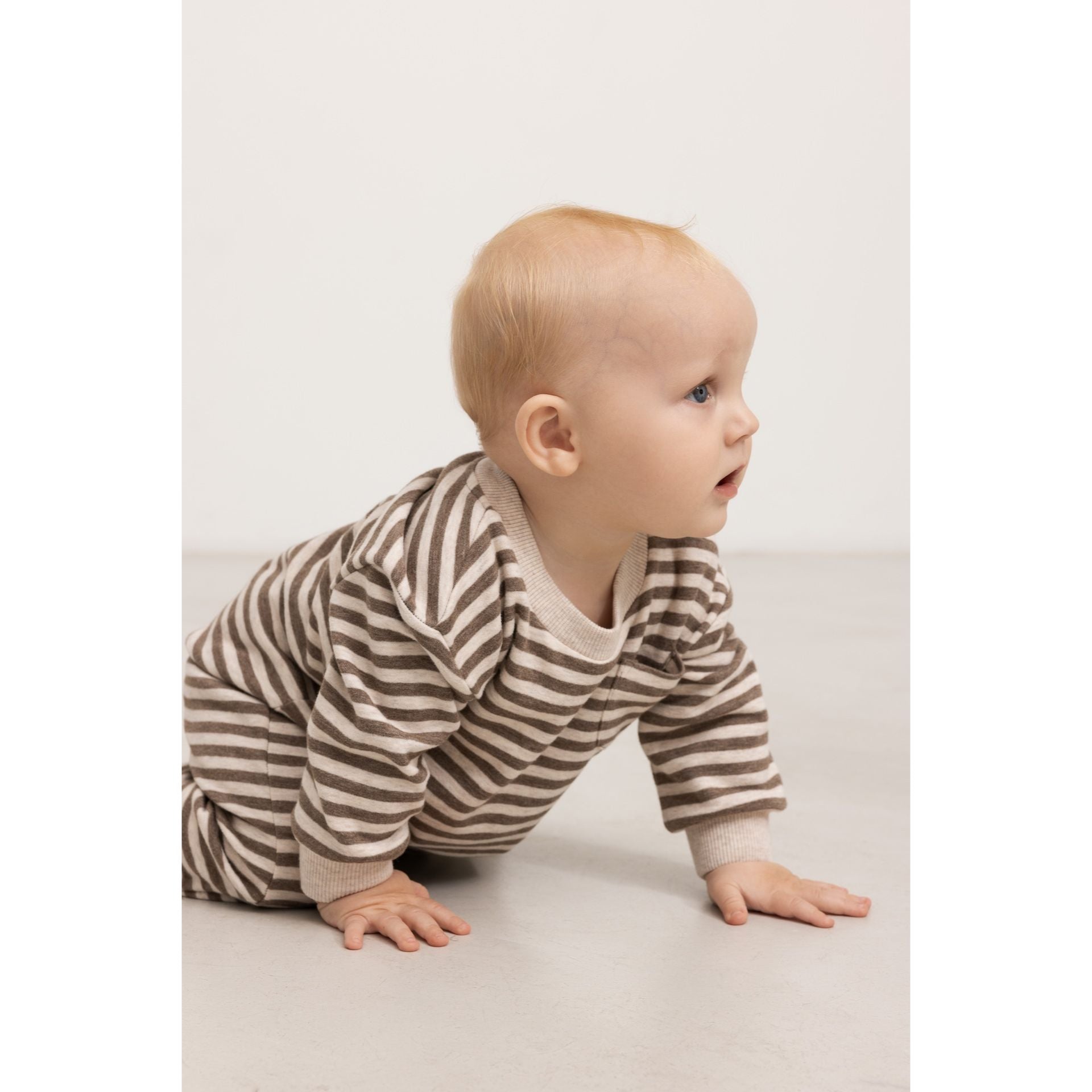 Superweiche Babyhose "Pako" gestreift von Marmar Copenhagen mit elastischem Bund an der Taille. Die Babyhose hat zwei Seitentaschen und einer Tasche mit Logo-Stickerei auf der Rückseite. Die Jogginghose ist sehr weich und angenehm zu tragen.