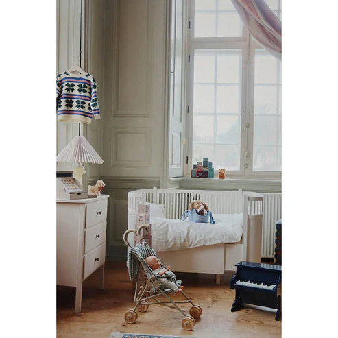 Der liebevoll gestaltete Puppenbuggy von Konges Sløjd wird schnell zum unverzichtbaren Begleiter im Kinderzimmer. Ob Lieblingspuppe oder Kuscheltier – in diesem charmanten Wagen wird jeder kleine Freund liebevoll transportiert und umsorgt. Die praktische Tasche am Griff bietet Platz für wichtiges Zubehör wie Puppenutensilien, Spielzeug oder eine kleine Trinkflasche. Besonders praktisch: Der Buggy lässt sich im Handumdrehen zusammenklappen und platzsparend verstauen.