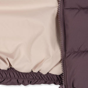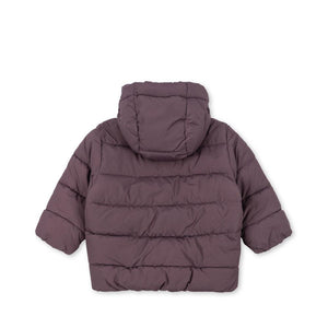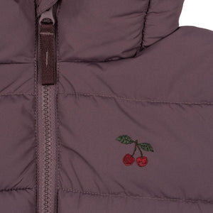 Winterjacke 'Alpi' in Lila mit kleiner, gestickter Kirsche auf der Brust von Konges Sløjd hält dein Kind warm in der kalten Jahreszeit.