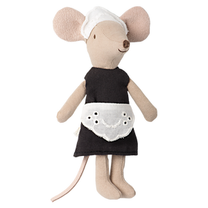 Diese grosse Schwester Maus erscheint im perfekten Dienstmädchen-Look mit ihrem klassischen Schürzenkleid und der passenden Haube. Dank ihrer magnetischen Hände kann sie kleine metallische Gegenstände halten und sorgt so für noch realistischere Spielszenen im Maileg Alltag. Ein zauberhaftes Highlight für Puppenhaus und Rollenspiel.