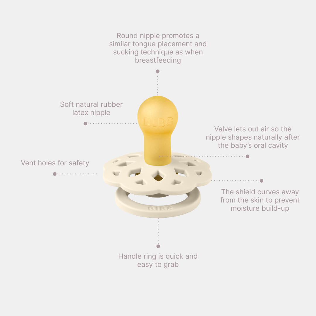BIBS Boheme Schnuller 6–12 M vereint sanfte Latex-Softness mit elegantem Design.