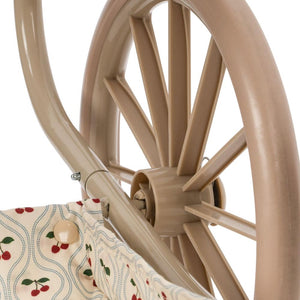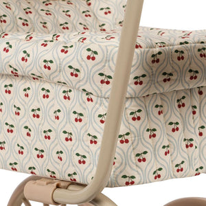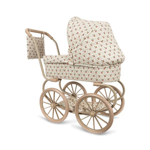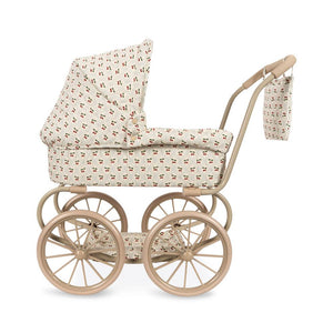 Liebevoll gestalteter Retro-Puppenwagen "Cherry" mit fröhlichem Print von Konges Sløjd – perfekt für kleine Puppeneltern. Dieser Puppenwagen ist eine kleinere Version für jüngere Kinder.