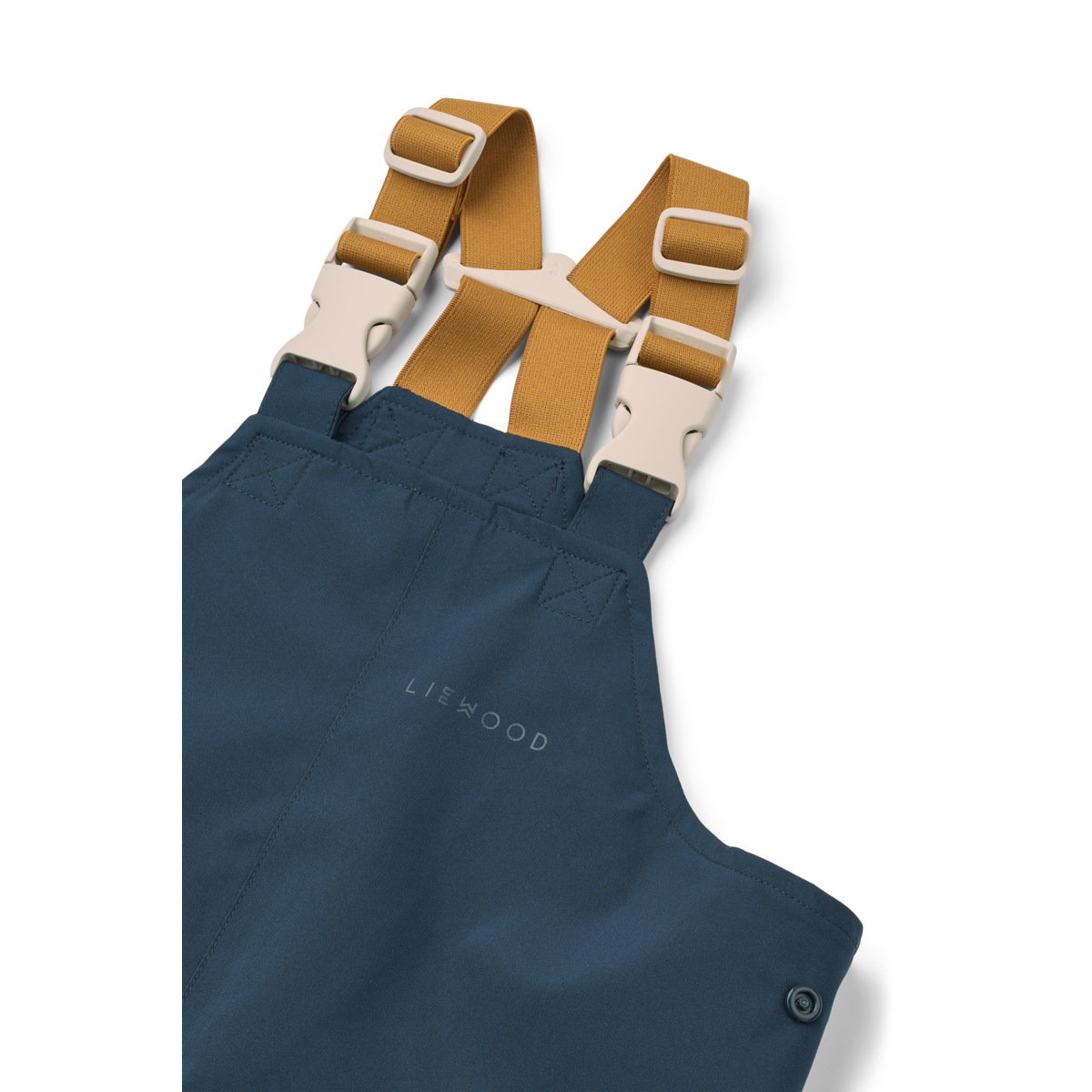 Wind- und wasserdichte Regenjacke mit abnehmbarer Kapuze und verstellbarer Latzhose. Das Set besteht aus atmungsaktivem Softshell-Recyclingstoff in klassischen LIEWOOD-Farben und -Drucken. Es verfügt über eine Blende über dem Reißverschluss und versiegelte Nähte, die dafür sorgen, dass Ihr Kleiner auch an den nassesten Tagen der Saison warm und trocken bleibt.
