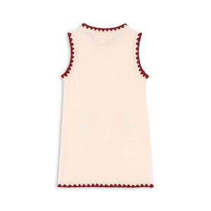 Das Collette Dress von Konges Sløjd ist ein elegantes Strickkleid aus hochwertiger, außergewöhnlich weicher Wolle. Das feine Kirschstickerei-Motiv verleiht dem Kleid einen verspielten, charmanten Look. Mit seiner geraden, figurbetonten Silhouette und praktischen Vordertaschen kombiniert es Stil und Komfort auf ideale Weise – ein echtes Lieblingsstück für festliche Anlässe oder gemütliche Tage.