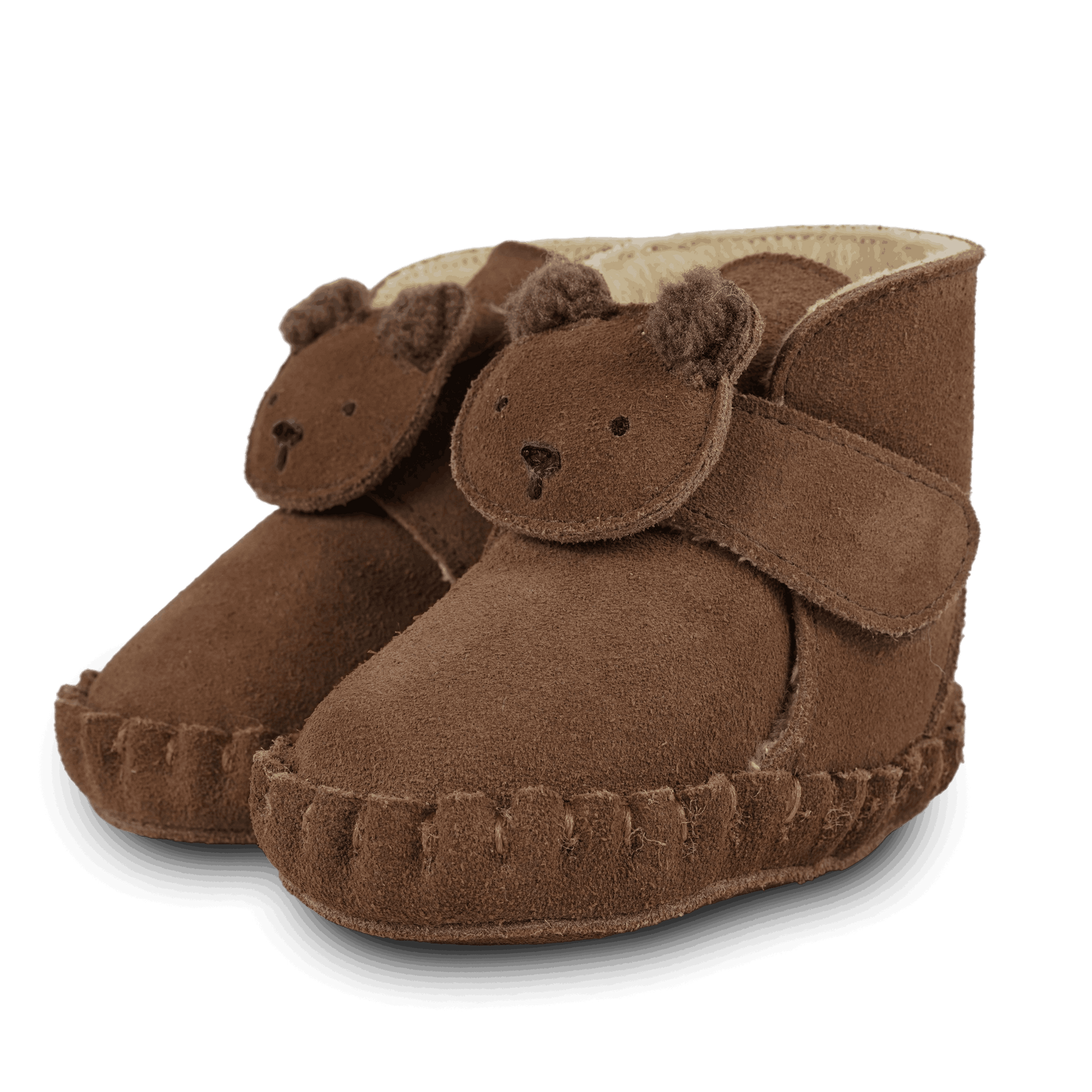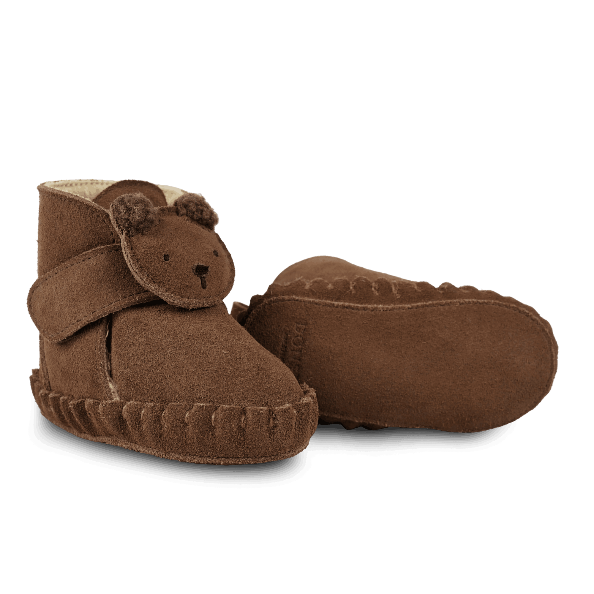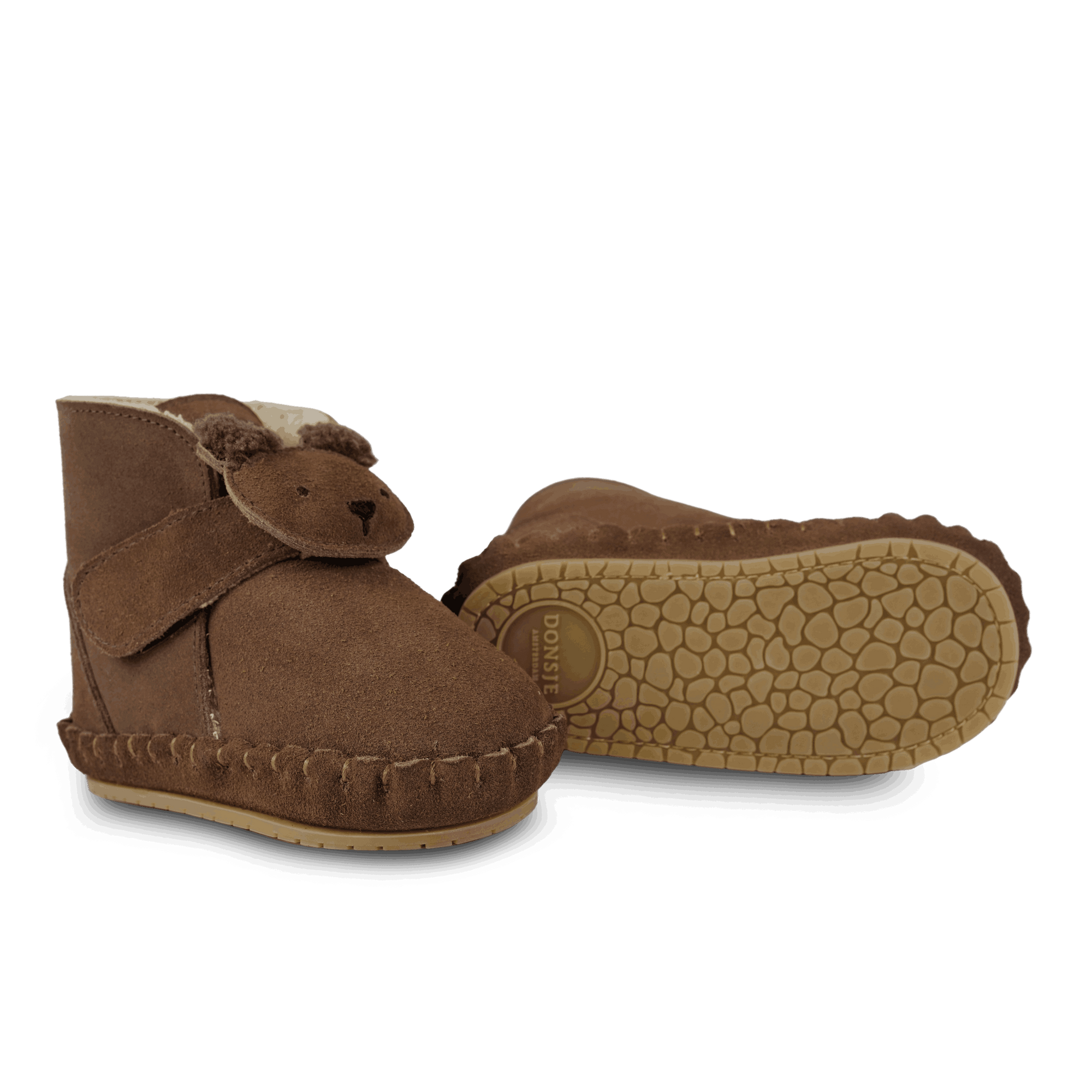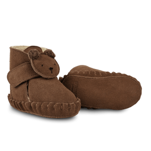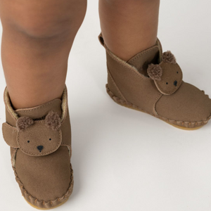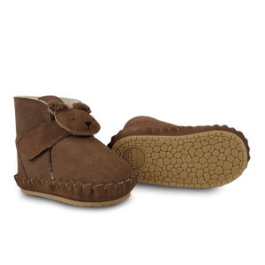 Donsje Baby-Booties "Pouty" Fluffy Bear | Teddy Brown