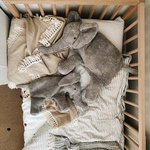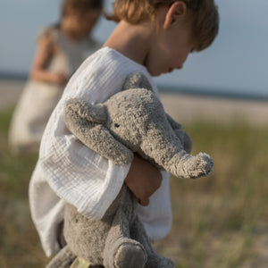 Der grosse Elefant von Senger Naturwelt ist Kuscheltier, Wärmekissen und dekoratives Accessoire in einem. Gefertigt aus GOTS-zertifizierter Bio-Baumwolle, gefüllt mit regionaler Schafschurwolle und einem herausnehmbaren Dinkelspreu-Kissen – für natürliche Wärme oder Kühlung. Ein langlebiger, nachhaltiger Begleiter für Kinder und Erwachsene.