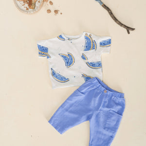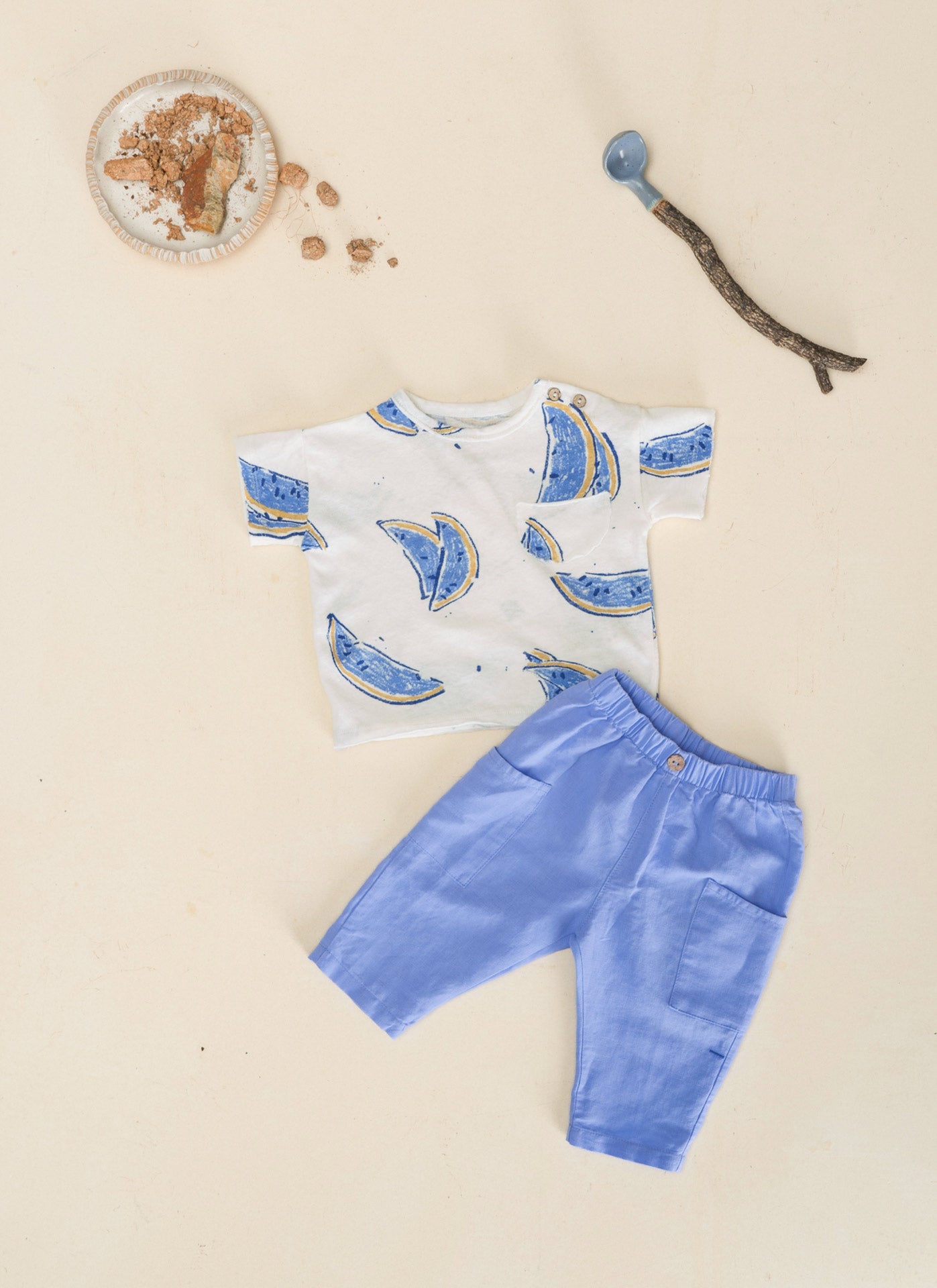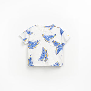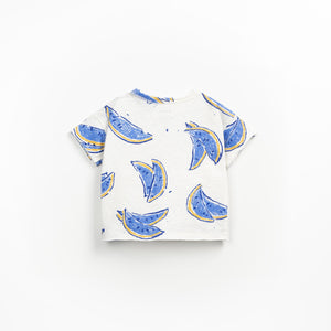 Cooles Jersey Kurzarmshirt von PLAY UP aus Bio-Baumwolle, Leinen und lässigem Druck.