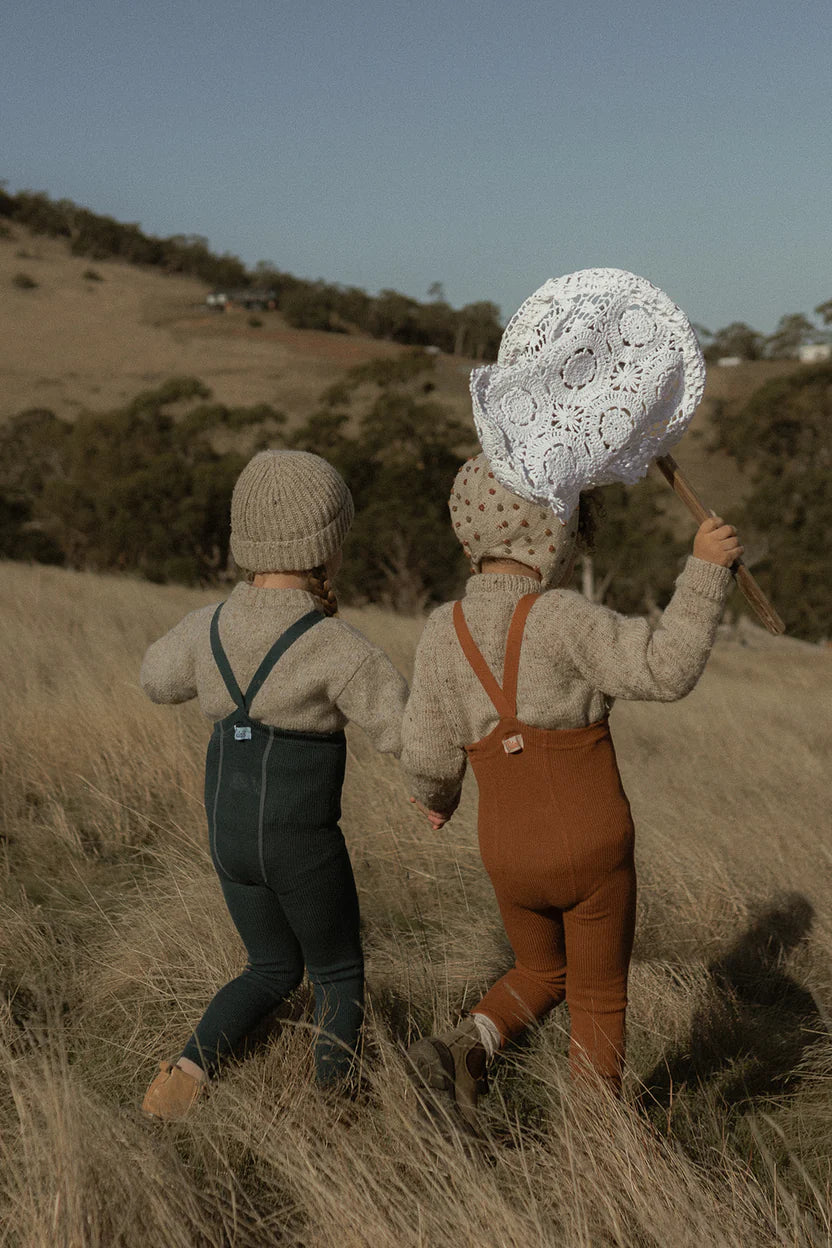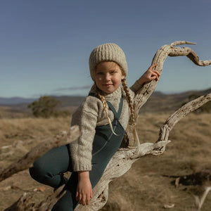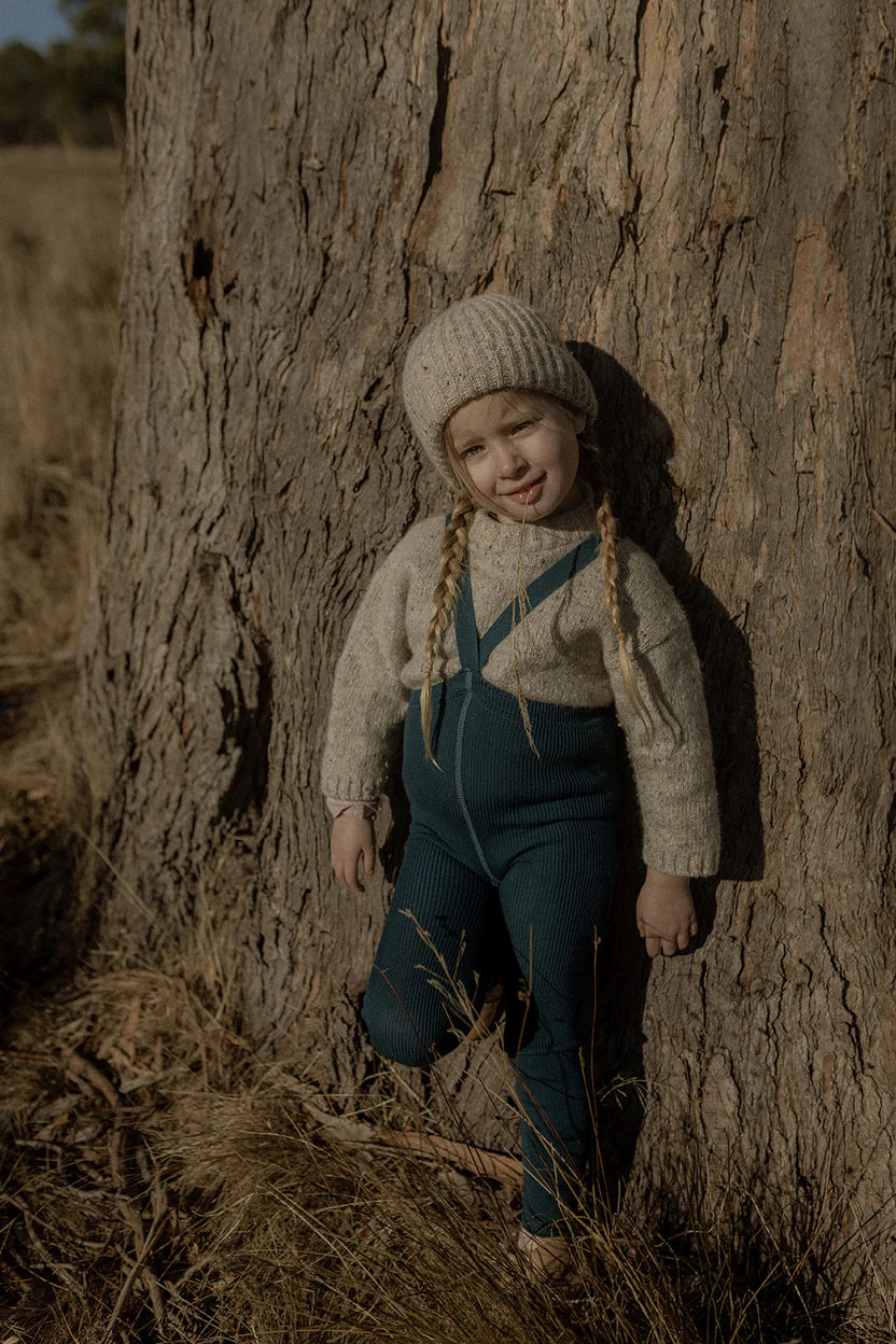 Weiche und robuste Silly Silas Strumpfhose mit Trägern in Blue Sapphire, hergestellt aus einer feinen Mischung aus Merinowolle und Bio-Baumwolle.