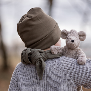 Die kleine Maus aus der Schlenker-Serie von Senger Naturwelt ist ein liebevoller Begleiter zum Kuscheln, Greifen und Spielen – nachhaltig, weich und handgefertigt.
