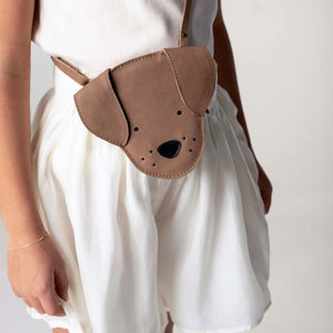Britta Classic Purse "Dog" von Donsje Amsterdam – süsse Ledertasche in Truffle Nubuck mit Hundemotiv.
