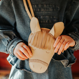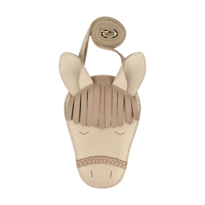 Die Britta Special Purse „Horse“ von Donsje Amsterdam in Ivory Classic Leather vereint verspieltes Design mit hochwertiger Verarbeitung. Das edle Leder sorgt für Langlebigkeit, während das charmante Pferdemotiv ein besonderer Hingucker ist. Dank verstellbarem Lederriemen sitzt die Tasche bequem, und das Reissverschlussfach bietet Platz für kleine Alltagsgegenstände. Perfekt als modisches Accessoire für Kinder.