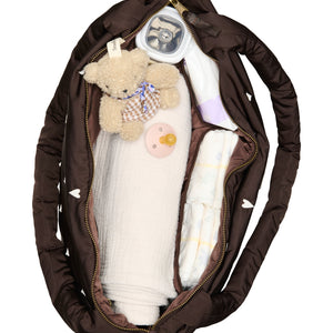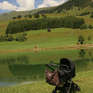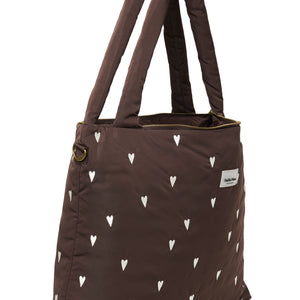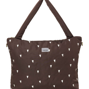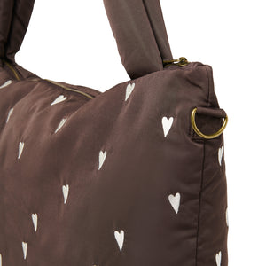 Die Studio Noos Wickeltasche "Puffy" Braun Hearts verbindet weiches Design mit alltagstauglicher Funktionalität.