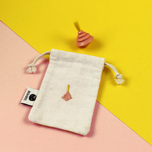 Cooler Holzkreisel mit Stoffbeutel von Ava & Yves.