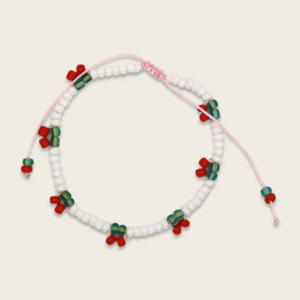 Süsses Armband mit Kirschen und Makrameeverschluss von Ava & Yves.