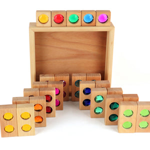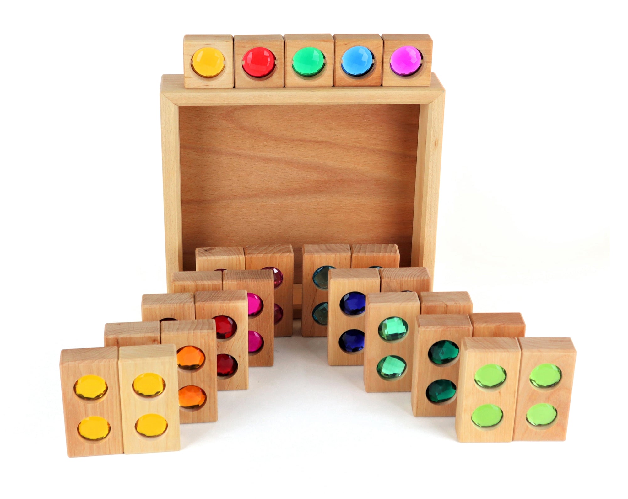 Set aus 25 kleinen Bauspiel Würfeln mit farbigen Acrylfenstern. Ideal für Lichttisch, Bauen & Sortieren. Hochwertig, kreativitätsfördernd und perfekt für Kitas & Zuhause.