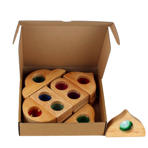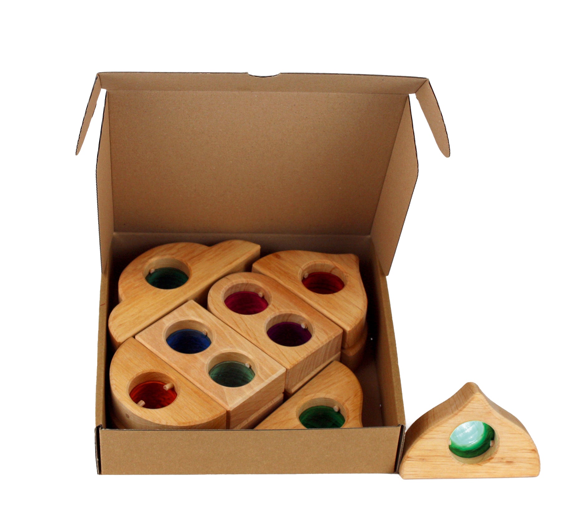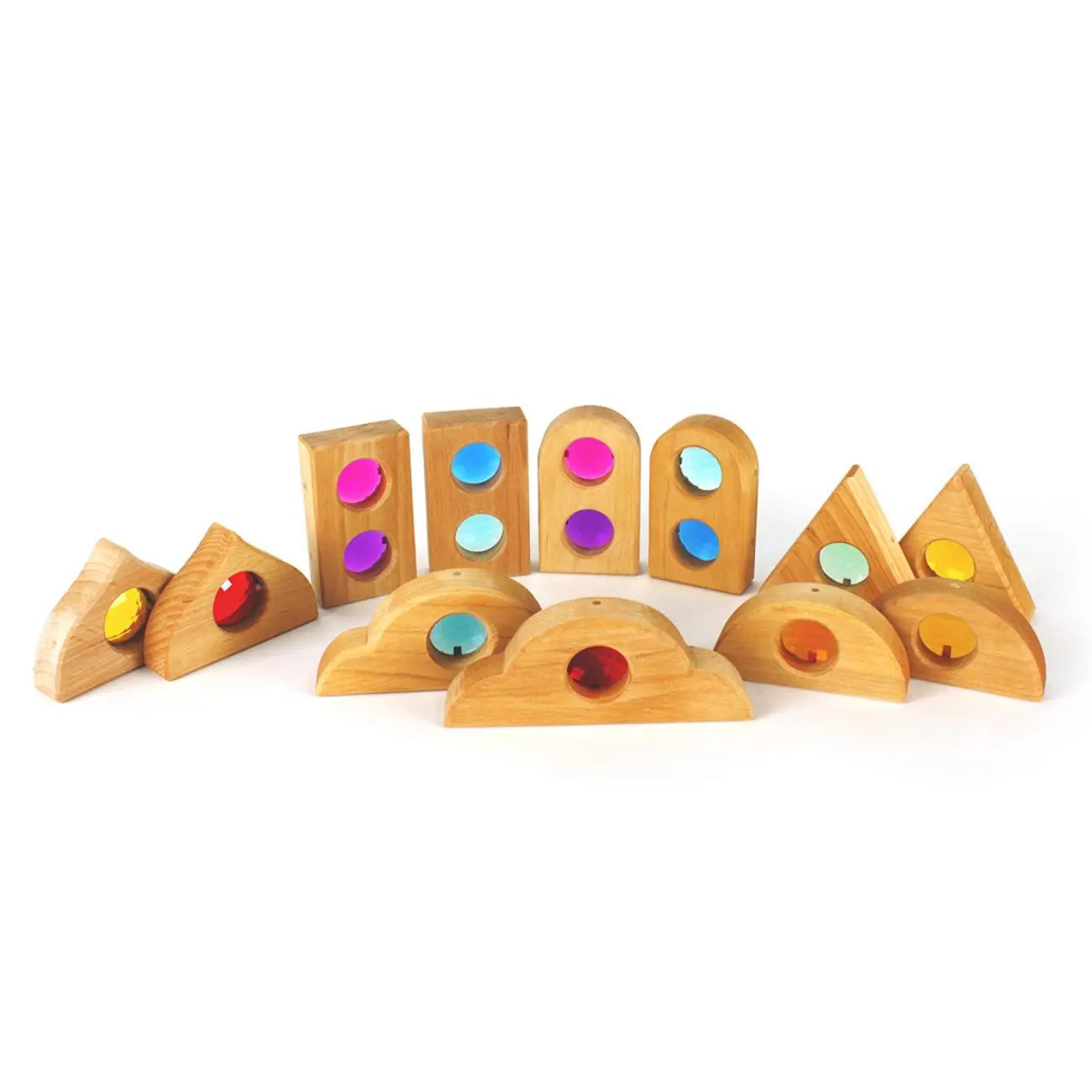 Entdecke die zauberhaften Märchenfenster von Bauspiel aus naturbelassenem Holz mit funkelnden, transparenten Steinen,