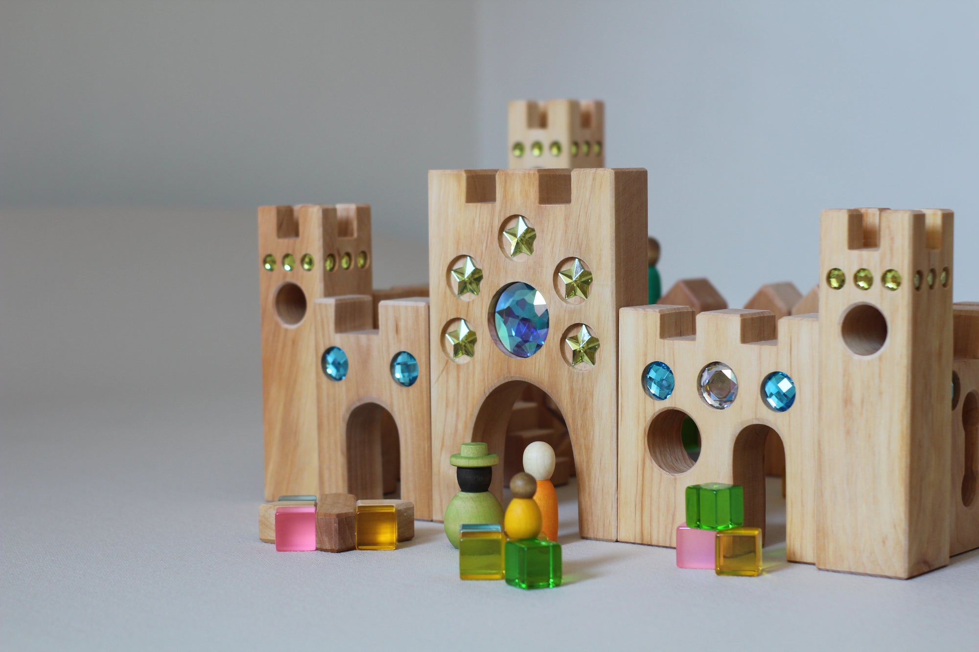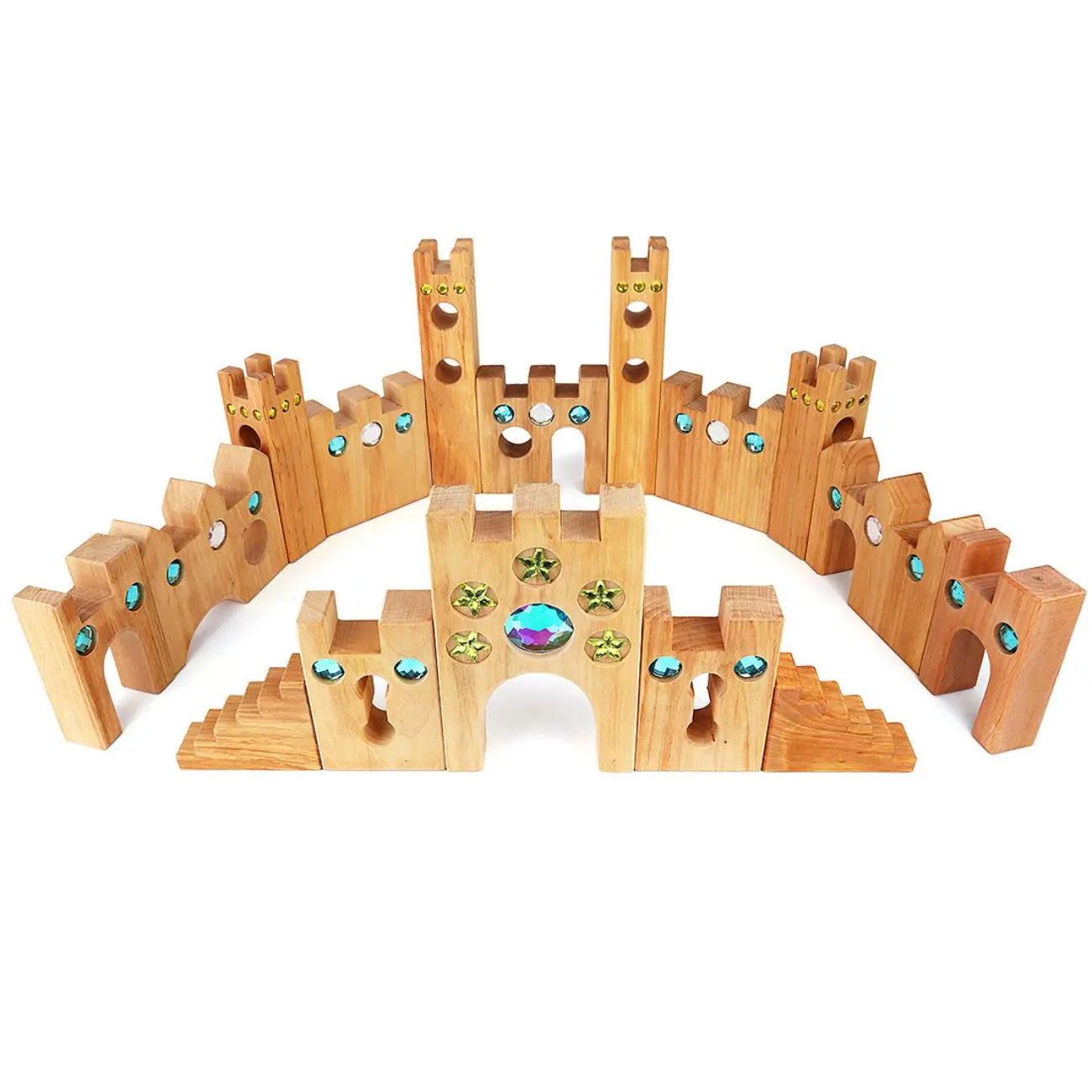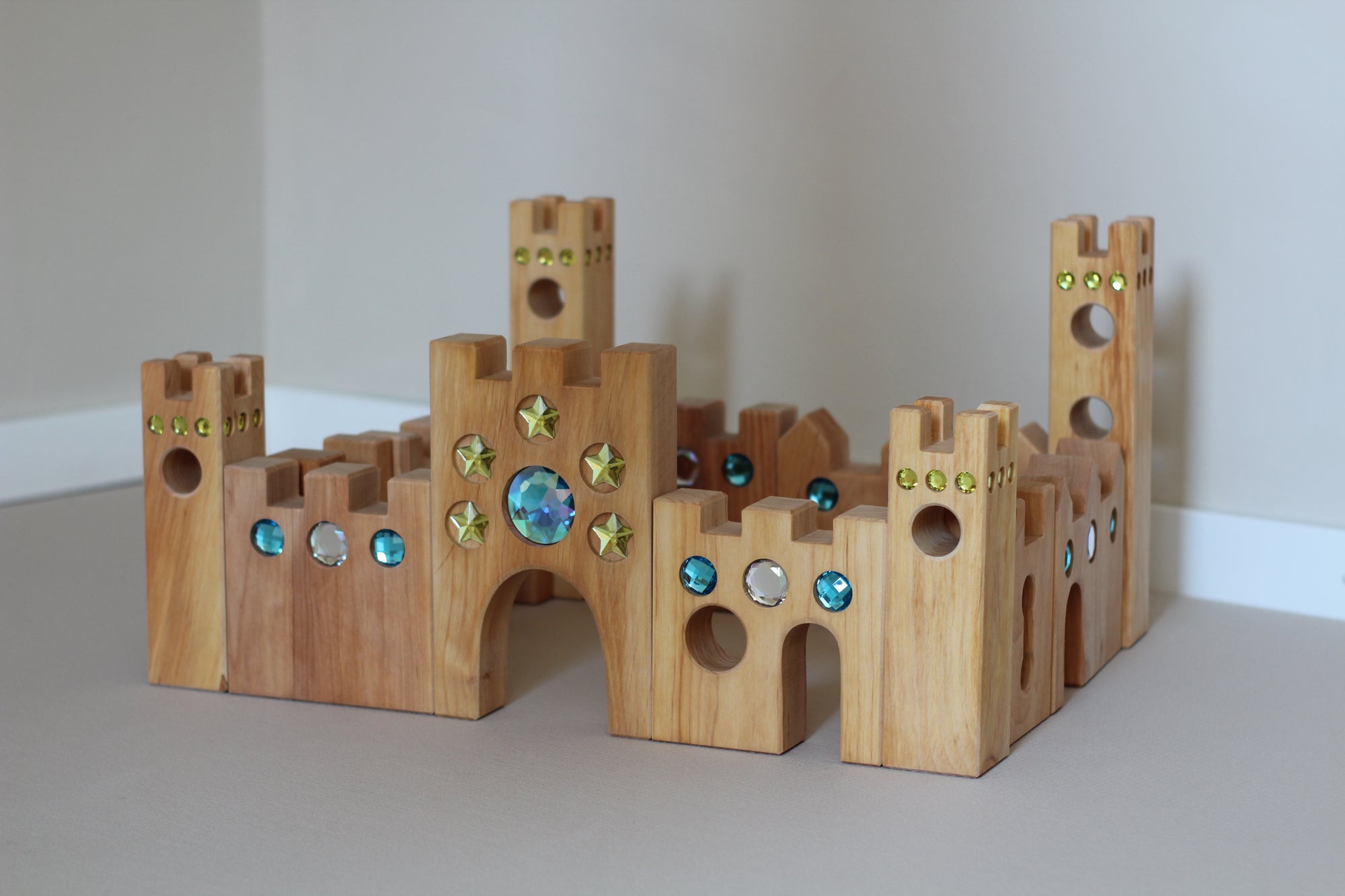 - 16 hochwertige Holzbausteine für das Märchenschloss