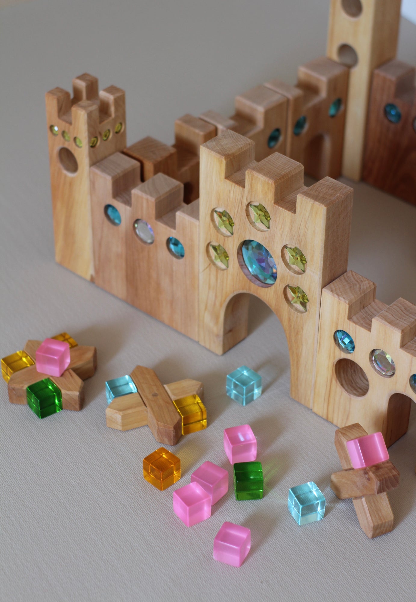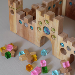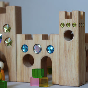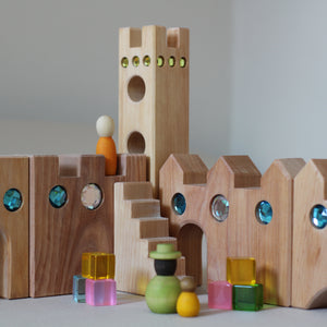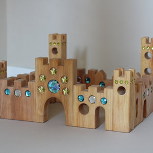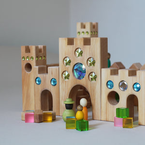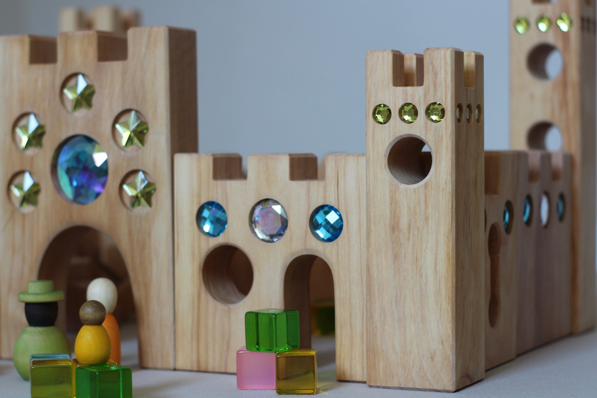 - 16 hochwertige Holzbausteine für das Märchenschloss