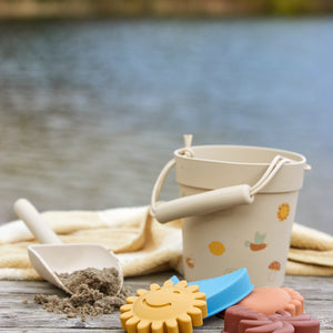 Das Set enthält einen Silikon-Eimer, mehrere Sandförmchen in unterschiedlichen Formen sowie eine passende Schaufel. Ob am Strand, am See oder im heimischen Sandkasten – das Agnes Set sorgt für stundenlangen Spielspass und fördert spielerisch Feinmotorik und Kreativität.