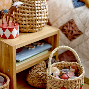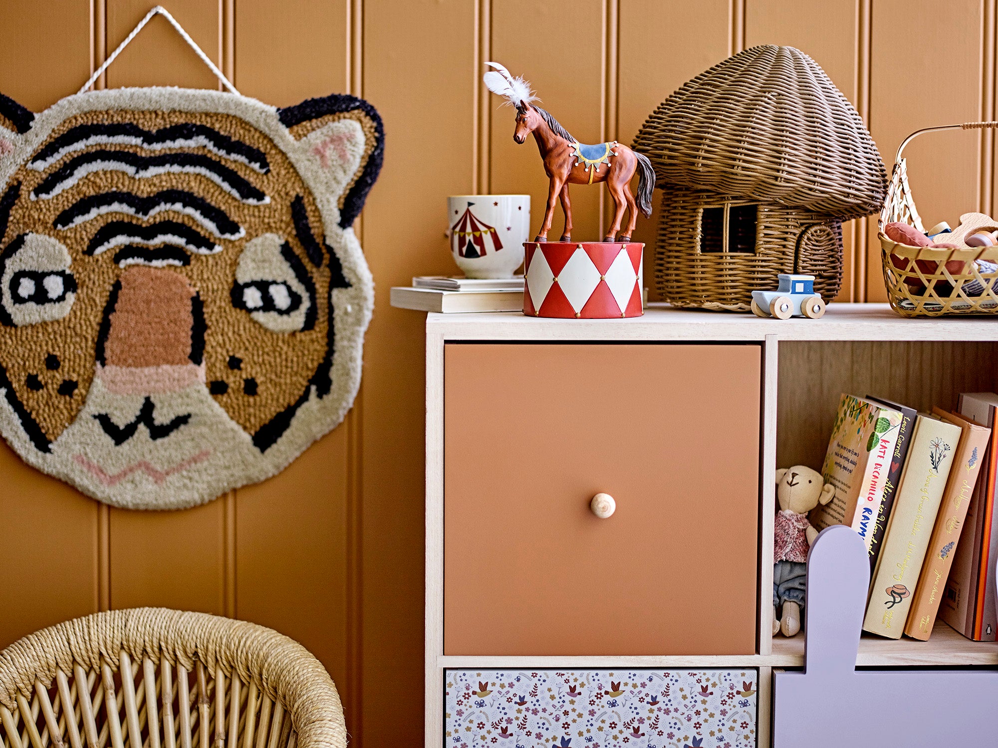 Das „Flor“ Deko-Pferd von Bloomingville MINI bringt zauberhaften Zirkus-Charme ins Kinderzimmer. Die Figur zeigt ein liebevoll geschmücktes Zirkuspferd, das stolz auf einem rot-weißen Podest steht. Mit blauem Sattel, dekorativer Feder und feinen Details eignet sich die Figur perfekt als Highlight für den Kindergeburtstag oder als besondere Dekoration im Regal.