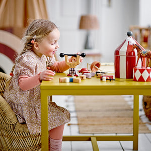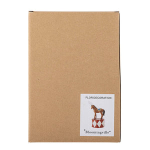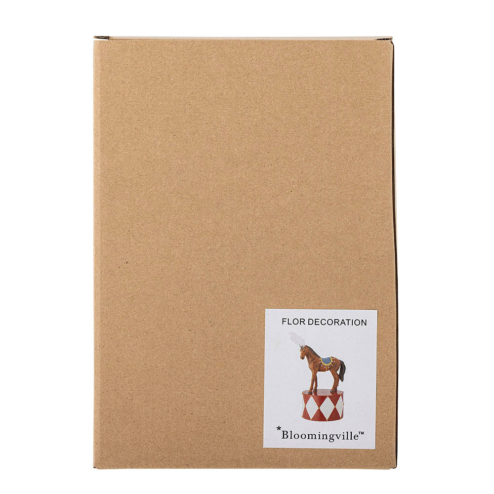 Die Flor Deko von Bloomingville MINI stellt ein geschmücktes Zirkuspferd dar, das auf einem rot-weissen Podest steht.